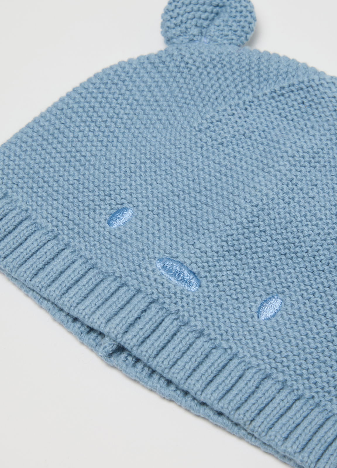 Caracteristici: Căciula albastră pentru nou-născuți din bumbac 100% Fagottino prezintă un model tricotat adorabil. Acest accesoriu este perfect pentru nou-născuți, asigurând confort și căldură în toamnă și iarnă. Decorată cu două urechi cusute și detalii brodate, adaugă dulceață look-ului bebelușului.