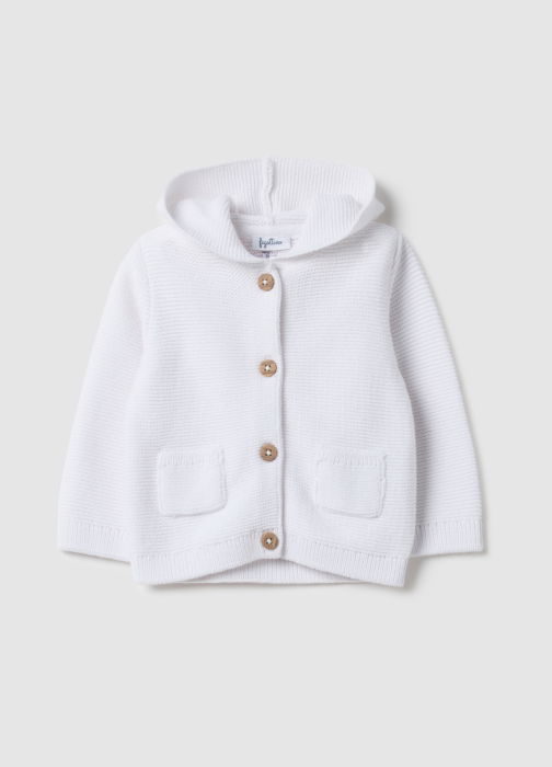 Tip Produs: Hanorac cardigan alb din bumbac 100% pentru bebeluși, croială regular