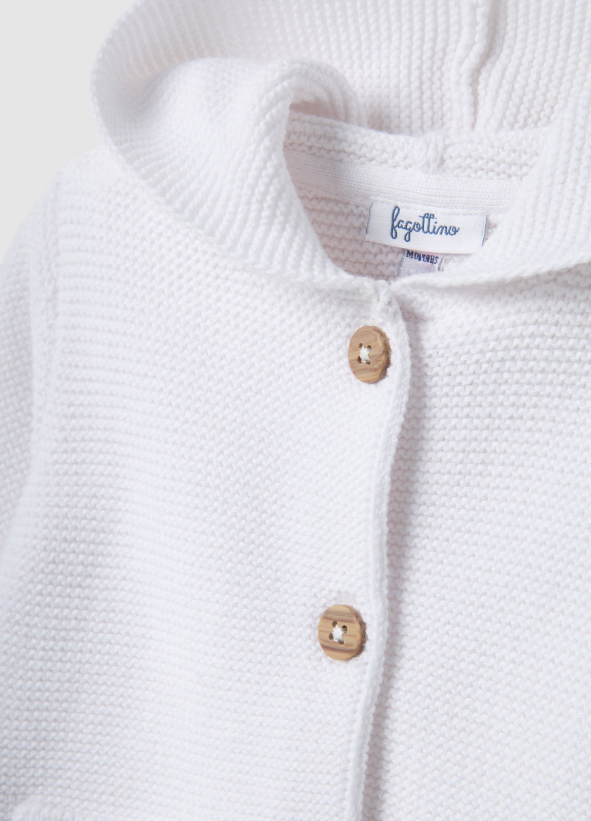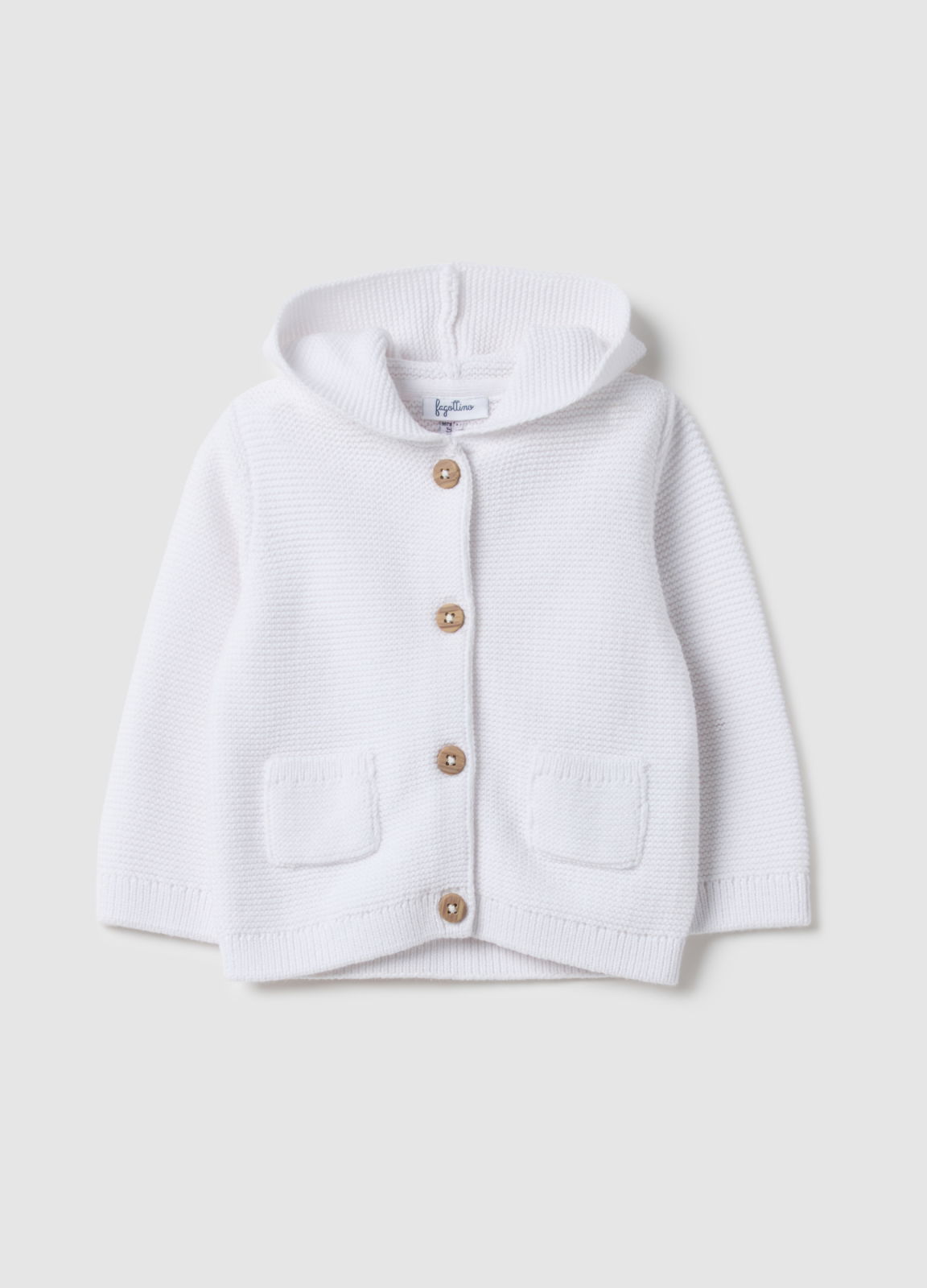 Caracteristici: Cardiganul cu glugă alb din linia Fagottino este perfect pentru sugari cu vârsta între 0 și 36 luni.Realizat din bumbac 100%, asigură moliciune și respirabilitate optimă.Închiderea cu nasturi și buzunarele frontale oferă practicitate și confort.Datorită designului tricotat tip jersey, oferă croială regular fit potrivită pentru orice ocazie.