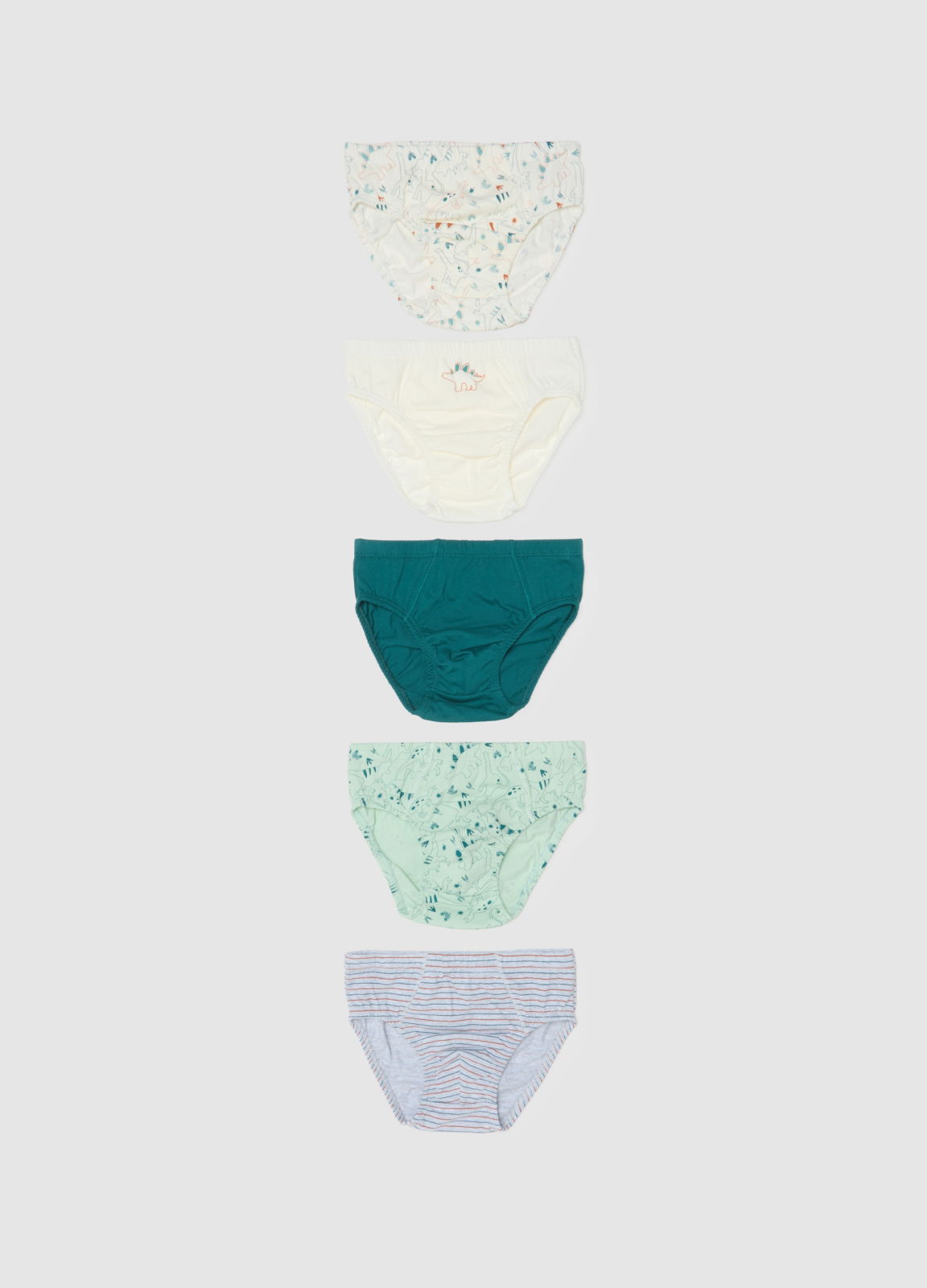 Caracteristici: Setul multipack de chiloți din linia OVS Kids este conceput pentru copii cu vârste între 3 și 8 ani. Fabricați din bumbac pur, oferă confort optim pe tot parcursul zilei. Modelele vesele cu dinozauri și dungi colorate fac ca acești chiloți să fie distractivi și potriviți pentru toate gusturile.