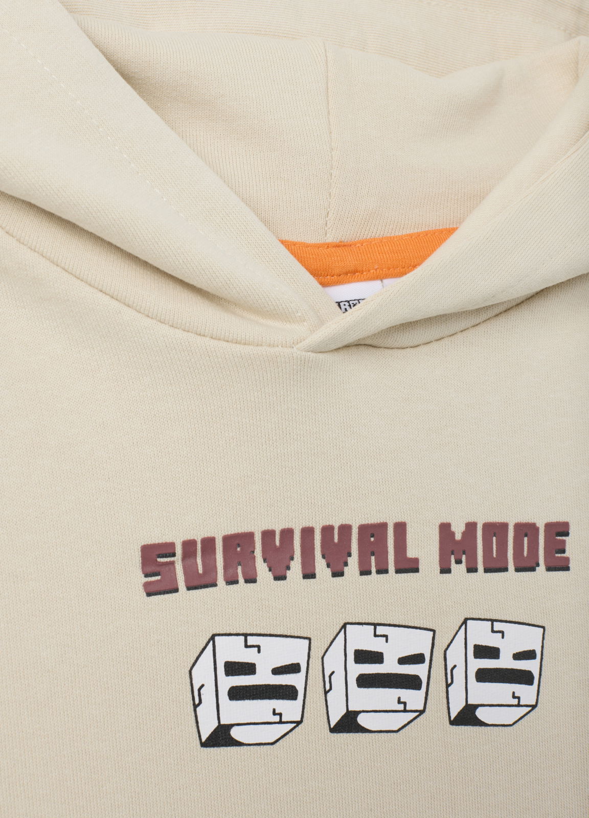 Caracteristici: Hanoracul bej din linia OVS Kids este destinat copiilor cu vârsta între 3 și 10 ani. Prezintă un imprimeu vibrant din Minecraft 'Survival Mode' pe partea din față și pe spate, perfect pentru a adăuga un strop de distracție ținutelor casual. Articolul este realizat din bumbac pur și are un buzunar frontal tip kangaroo și manșete elastice, asigurând confortul și practicitatea în orice situație.