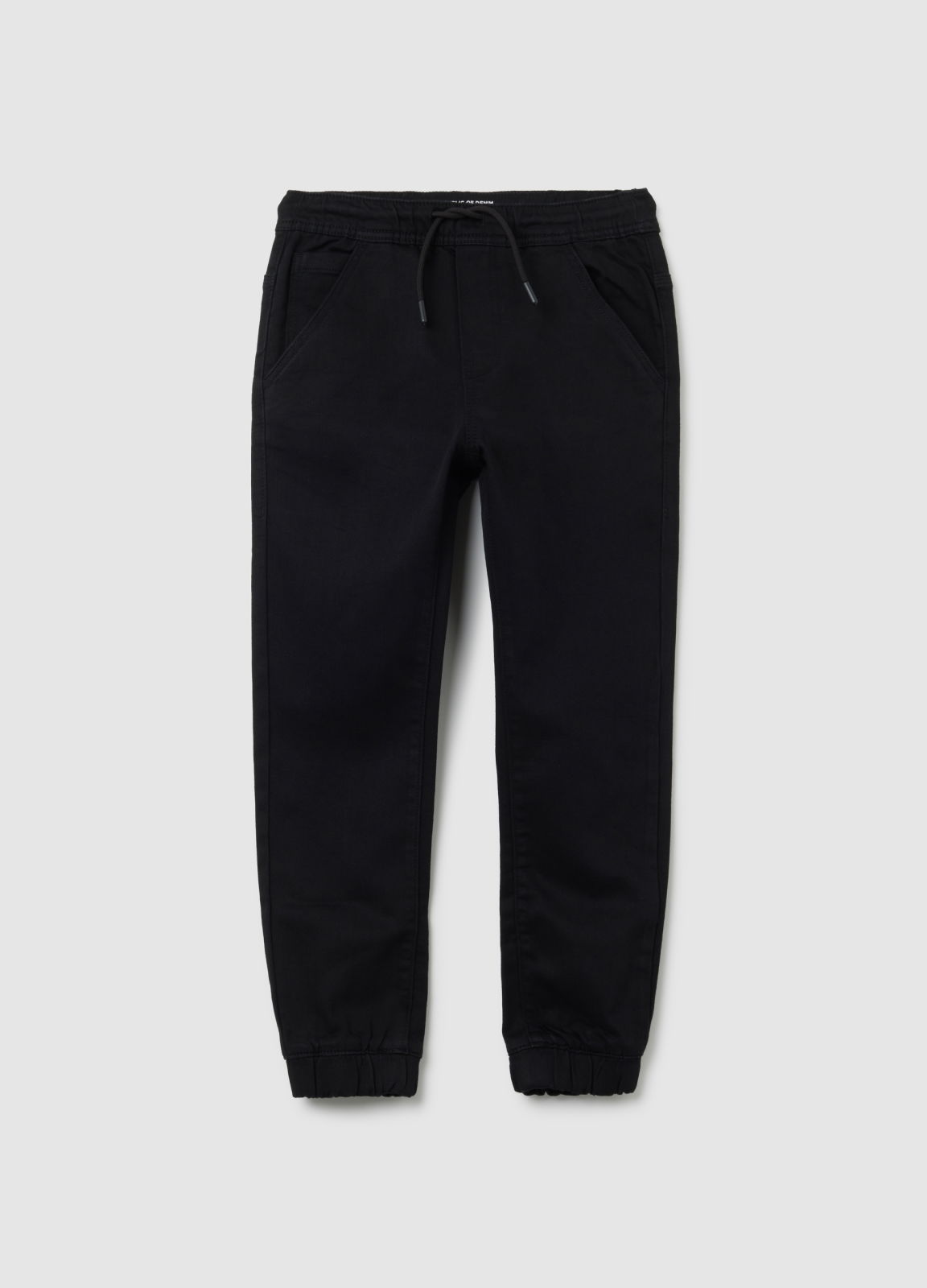 Tip Produs: Pantaloni jogger din denim negru cu talie elastică pentru băieți, croială regular