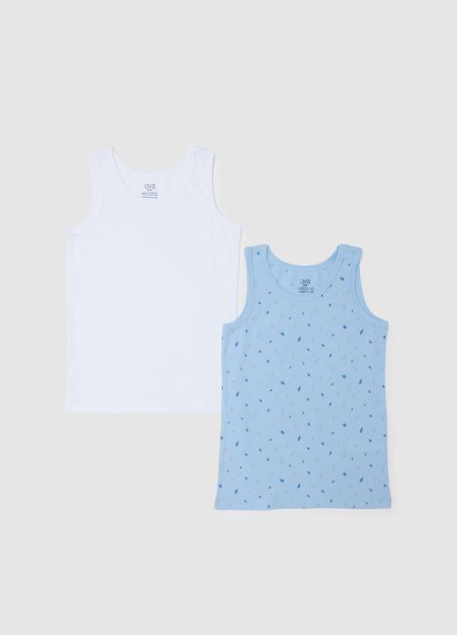 Caracteristici: Set de două maieuri multicolore pentru copii, linia OVS KIDS, din bumbac 100%, pentru confort optim în zilele calde. Design fără mâneci, guler rotund pentru libertate de mișcare. Model multicolor cu fulgere pentru vivacitate, model alb versatil pentru orice ocazie.