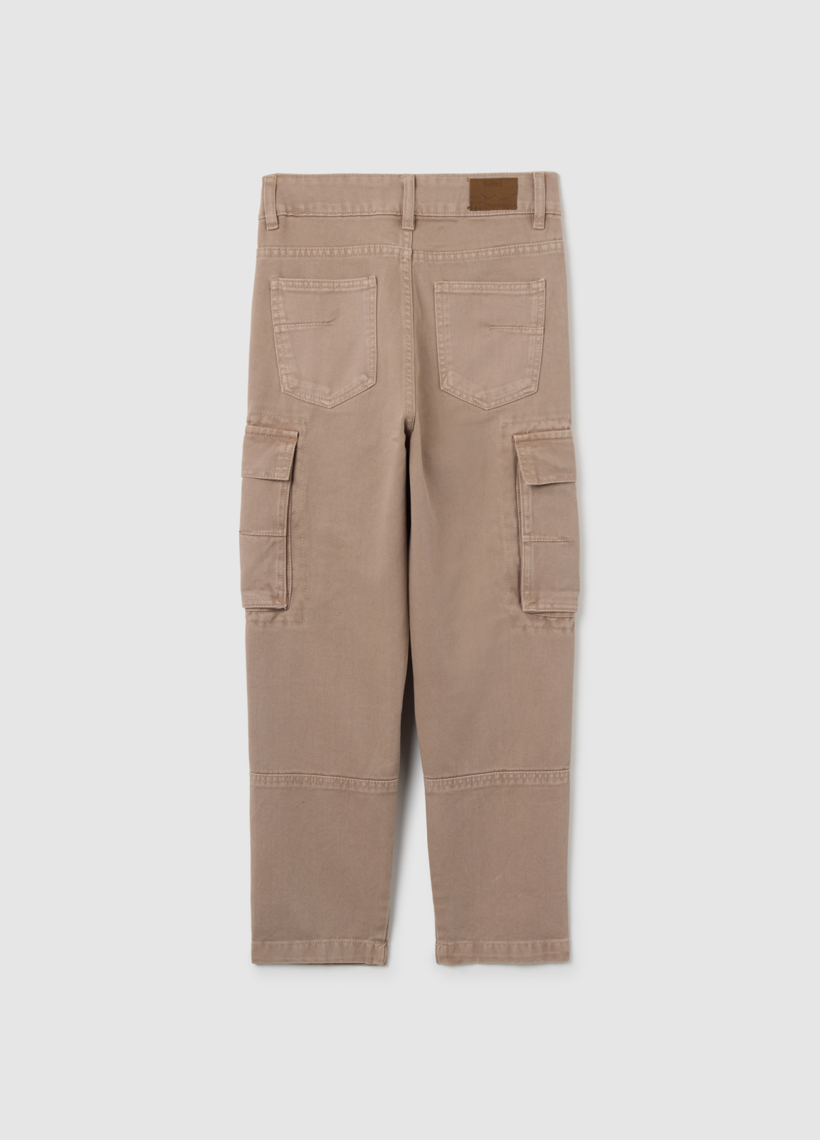 Tip Produs: Pantaloni cargo bej pentru băieți, din bumbac 100%, croială regular