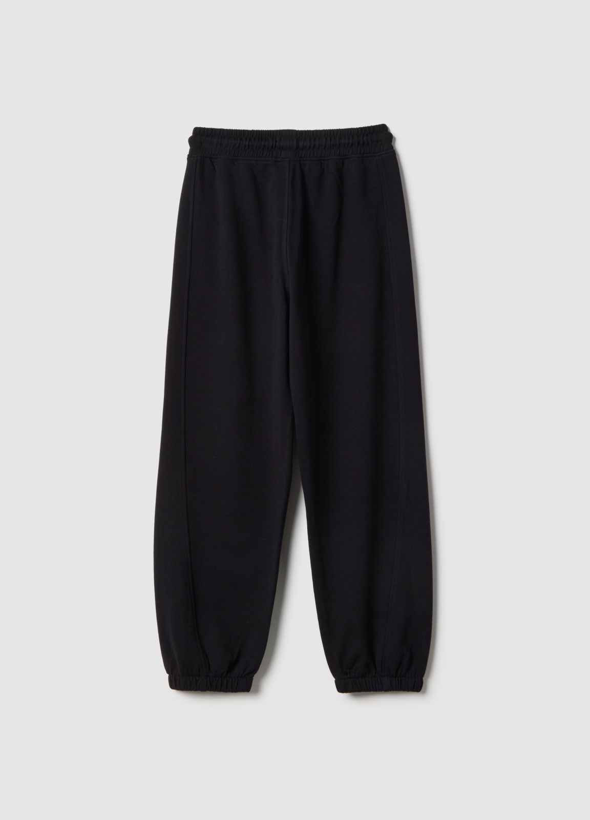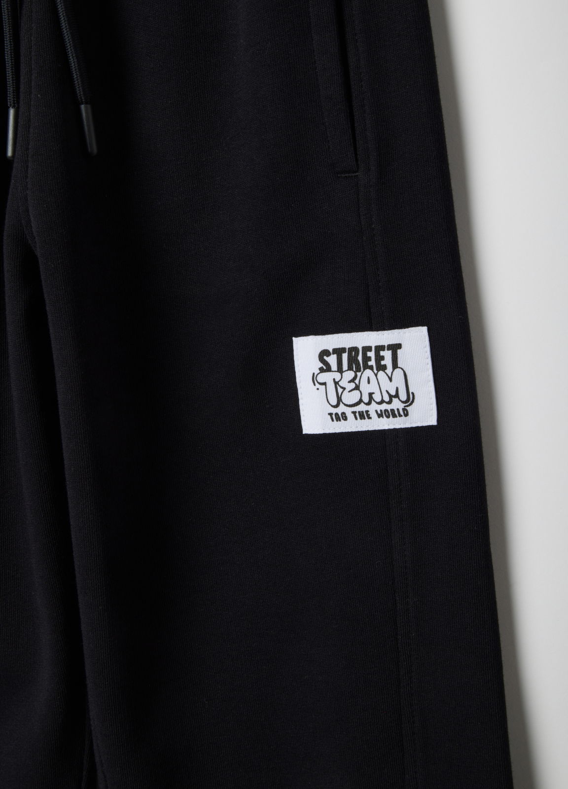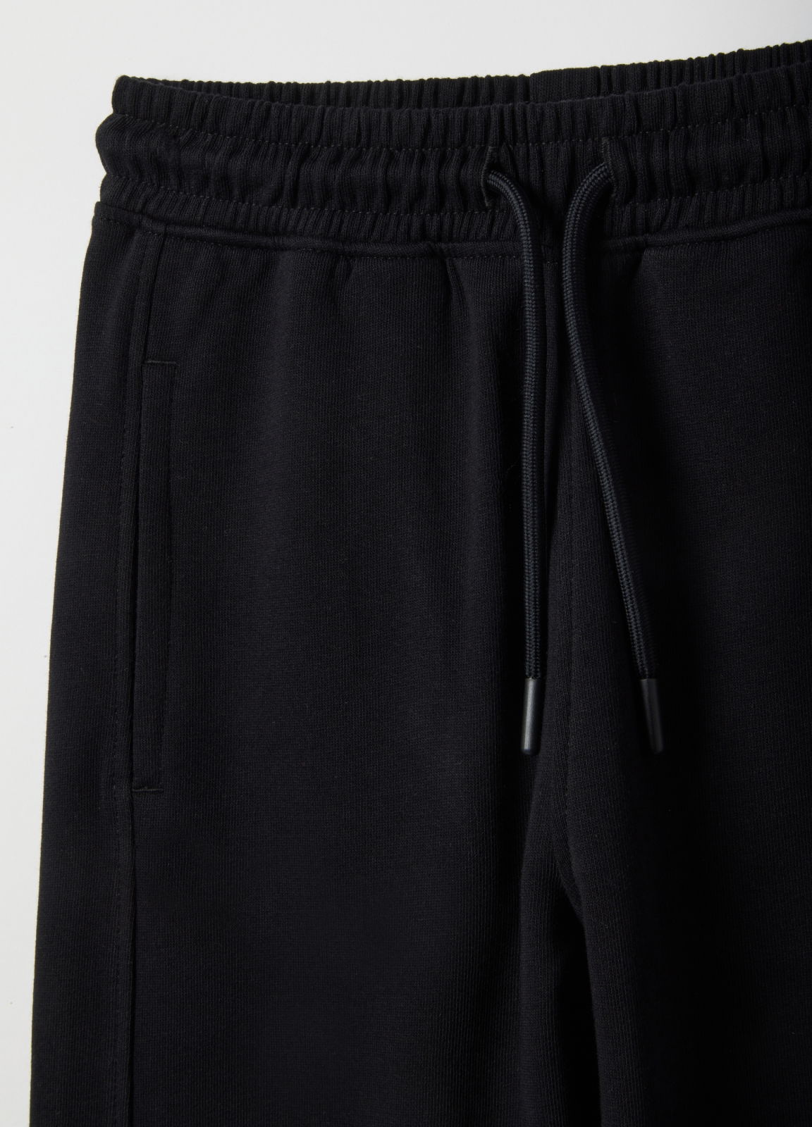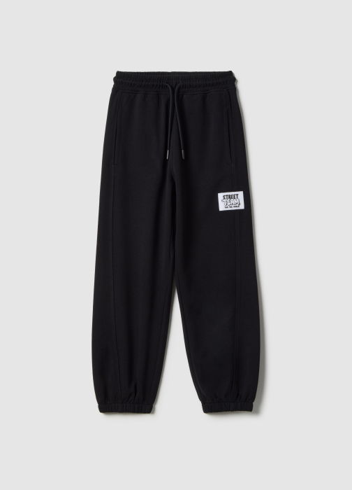 Tip Produs: Pantaloni jogger negri din bumbac 100% pentru copii, croială normală, cu patch