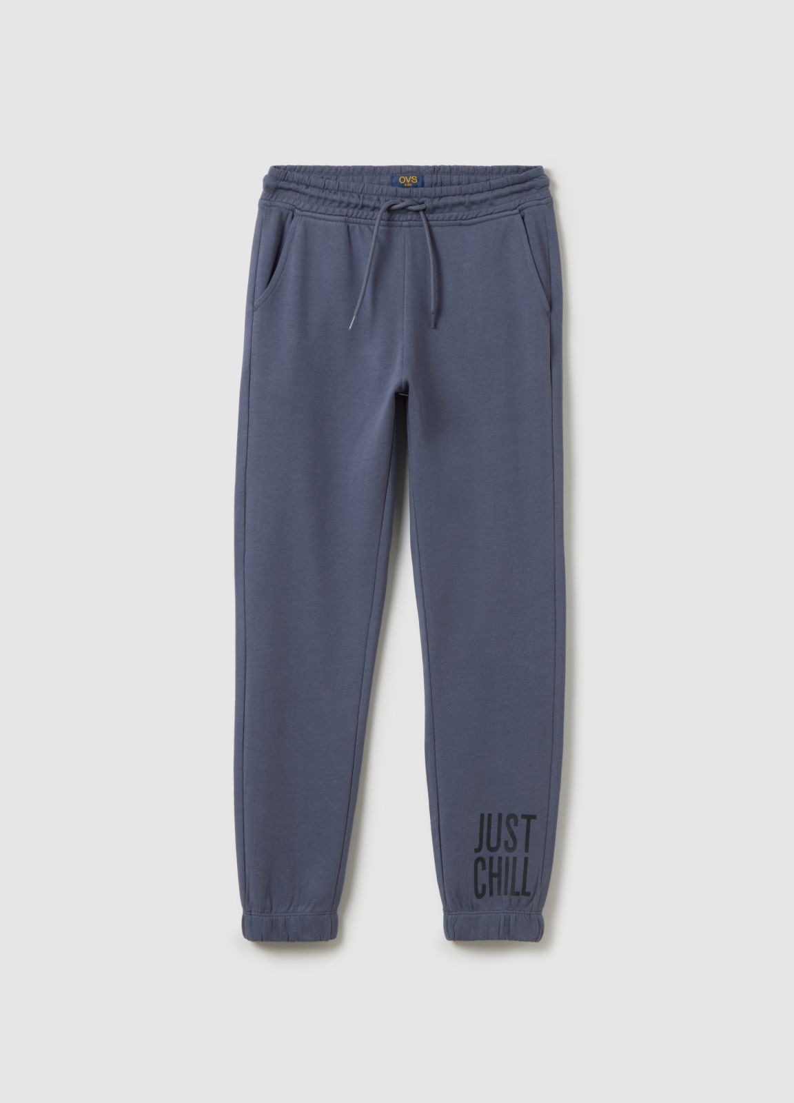 Caracteristici: Pantalonii jogger albaștri din gama OVS Kids sunt destinați băieților cu vârsta între 10 și 15 ani, perfecți pentru relaxare și timp liber. Realizați din bumbac pur, oferă croială regular fit, cu talie elastică și șnur pentru confort optim. Imprimeul „Just Chill” adaugă un plus de originalitate, făcându-i perfecți pentru orice ocazie informală.