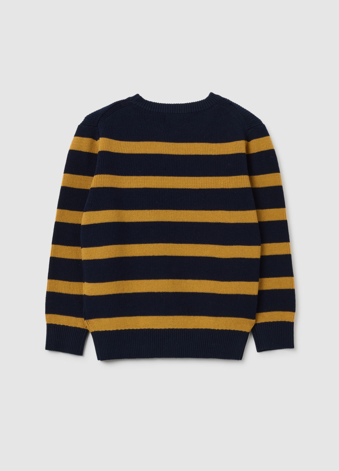 Caracteristici: Puloverul cu mânecă lungă din linia OVS Kids este ideal pentru copiii cu vârste între 3 și 10 ani. Realizat din bumbac 100%, are un design vibrant cu dungi albastre și galbene, accentuat de emblema NY pe piept pentru un plus de stil. Croiala regular fit îl face ușor de purtat și asortat cu orice ținută casual.