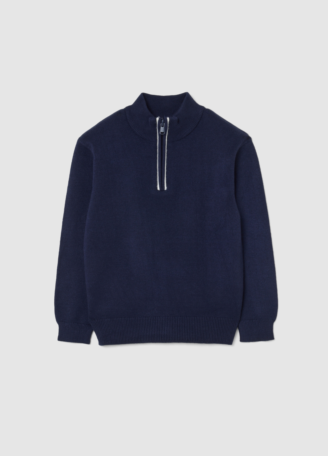 Tip Produs: Pulover albastru cu guler înalt pentru copii, croială regular, cu fermoar la jumătate