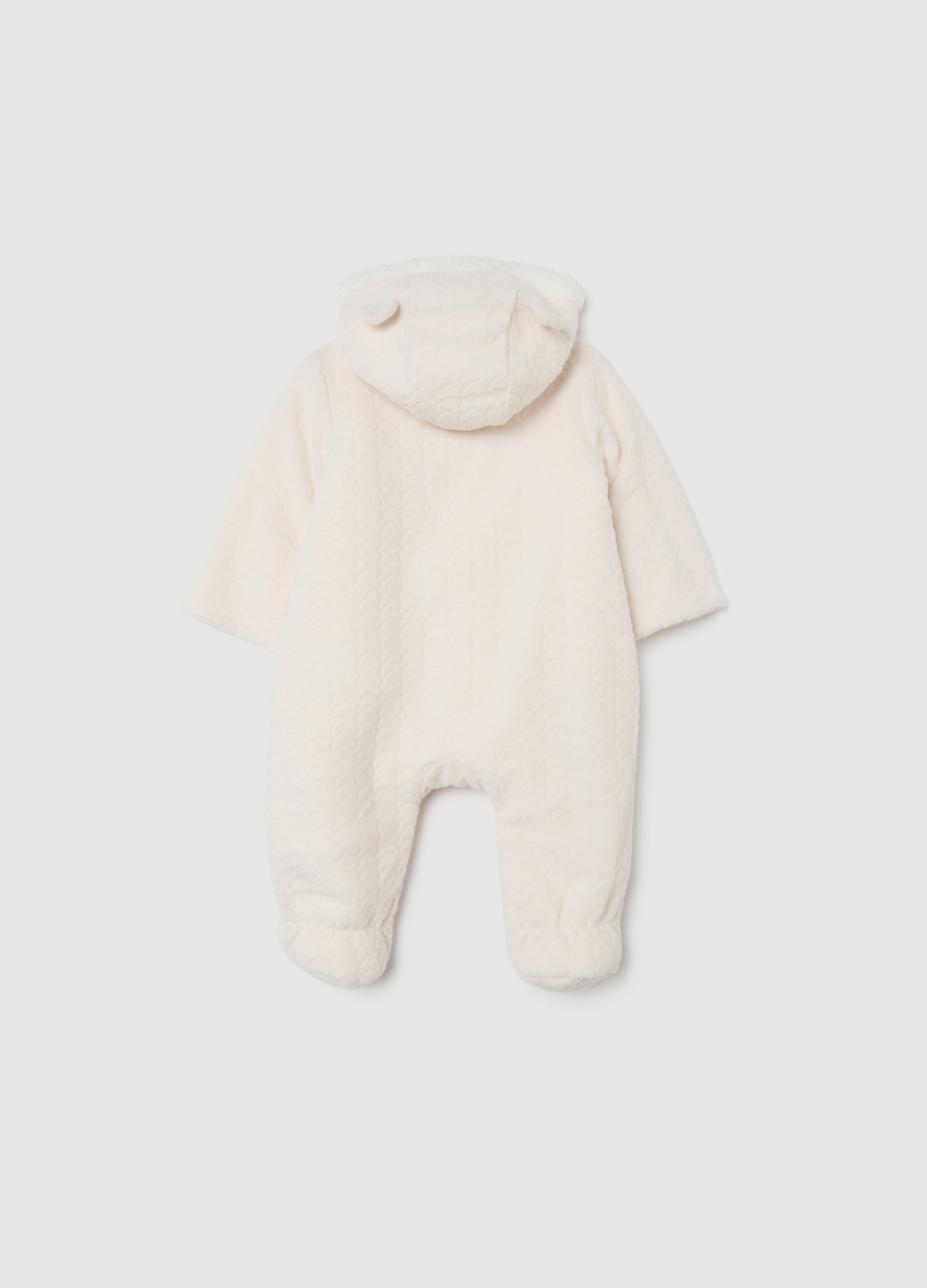 Tip Produs: Salopetă bej pentru bebeluși, cu glugă și fermoar