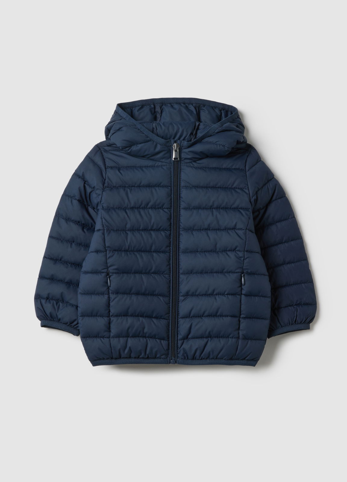 Tip Produs: Geacă albastră matlasată, regular fit, cu glugă, pentru bebeluși