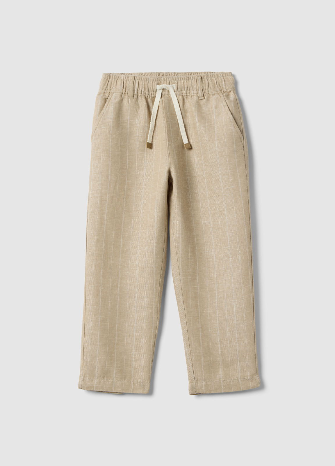 Tip Produs: Pantaloni copii, bej, cu dungi, amestec de in, croială regular