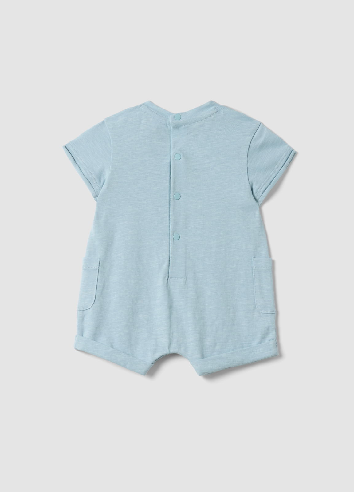 Caracteristici: Salopeta albastră pentru bebeluși din linia Fagottino este realizată din bumbac organic pur, oferind finețe și confort pentru pielea sensibilă. Gulerul clasic și capsele facilitează îmbrăcarea. Mânecile scurte adaugă prospețime designului, decorat cu aplicații simpatice cu mașinuțe.