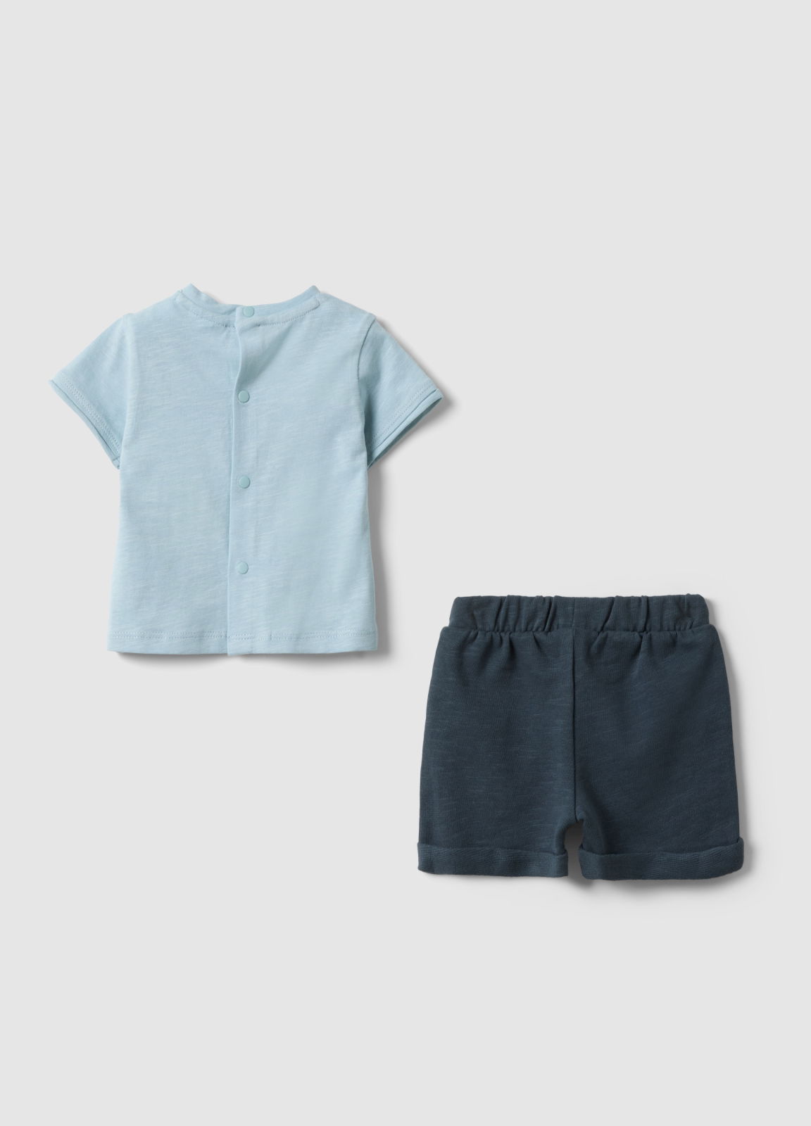 Caracteristici: Acest set multicolor din linia Fagottino este realizat din bumbac organic pur, ideal pentru nou-născuți și perfect pentru sezonul de vară. Include un tricou albastru cu guler clasic și pantaloni scurți albaștri confortabili, ambele concepute pentru a asigura libertate de mișcare. Designul simplu cu ursuleț și sistemele practice de închidere fac articolul ușor de îmbrăcat, oferind confort în timpul jocului.