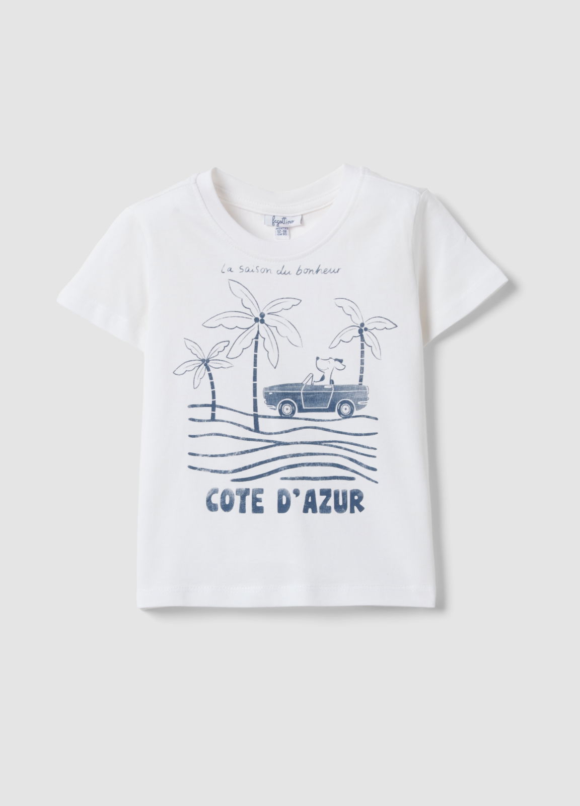 Caracteristici: Tricou alb din linia Fagottino, realizat din bumbac organic pur, perfect pentru pielea delicată a copiilor între 9 și 36 luni. Croială regular, mâneci scurte și guler rotund, oferind confort și practicitate. Grafică inspirată de Côte d'Azur adaugă veselie, piesă versatilă pentru orice ocazie.
