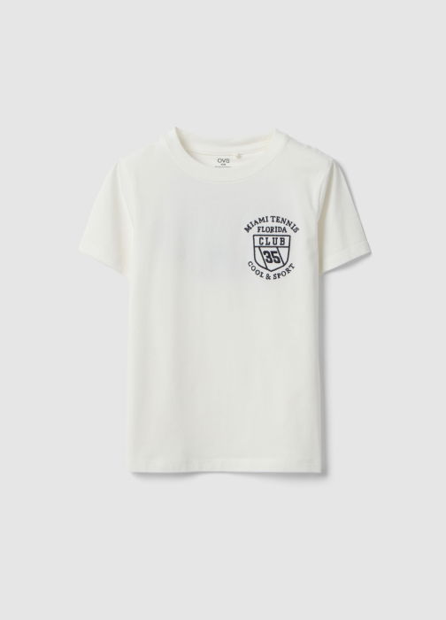 Caracteristici: Tricou alb din bumbac elastic din linia OVS KIDS, pentru copii între 3 È™i 10 ani, oferind confort È™i libertate de miÈ™care. Croiala oversized, mâneci scurte È™i decolteu rotund fac tricoul ideal pentru zilele calde de vară. Materialul moale È™i respirabil garantează prospeÈ›ime. Model versatil, cu logo „Miami Tennis Florida” pe piept.