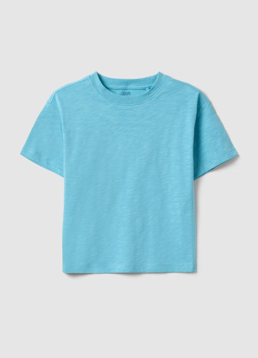 Tip Produs: Tricou albastru oversized cu guler rotund din bumbac pur pentru copii
