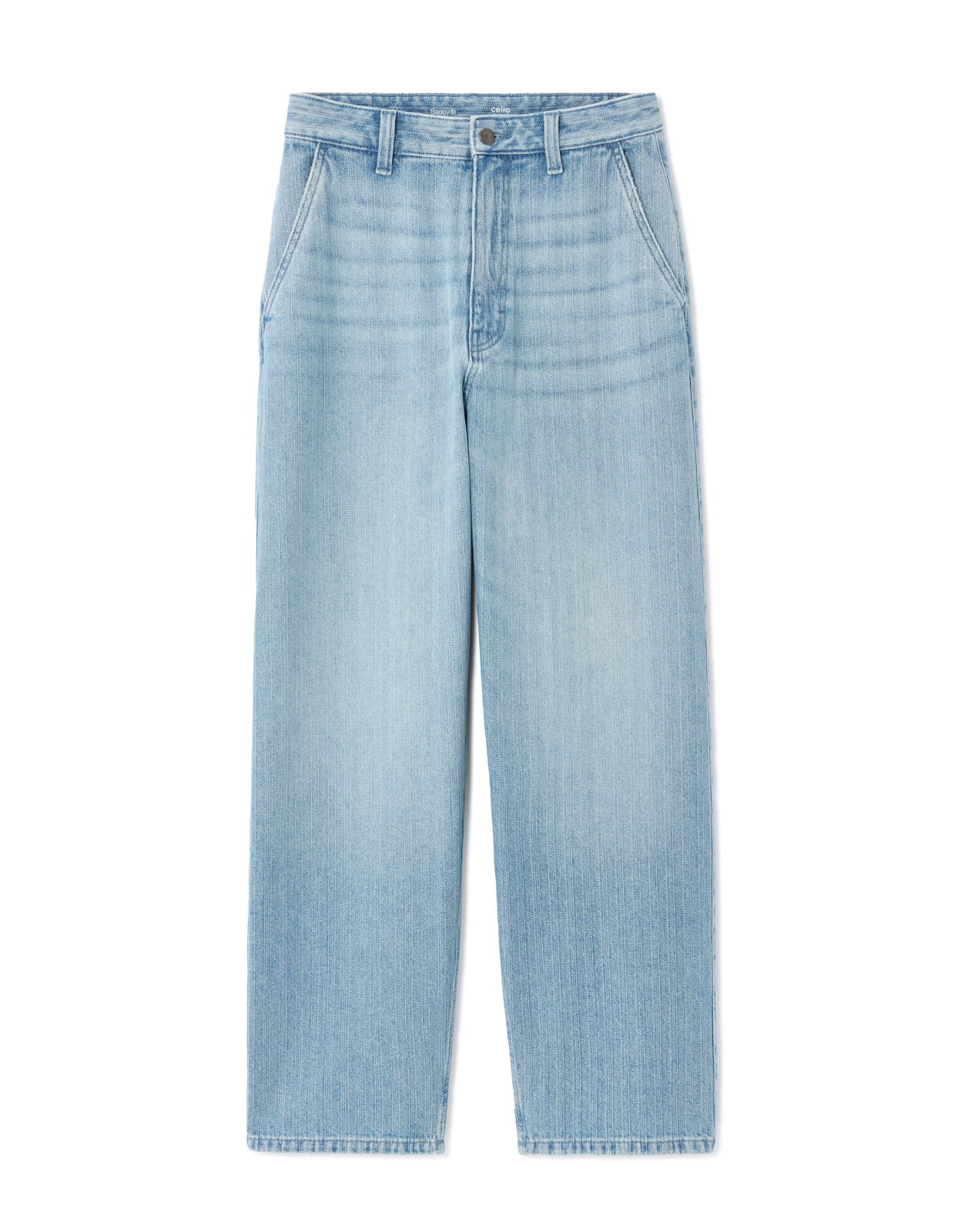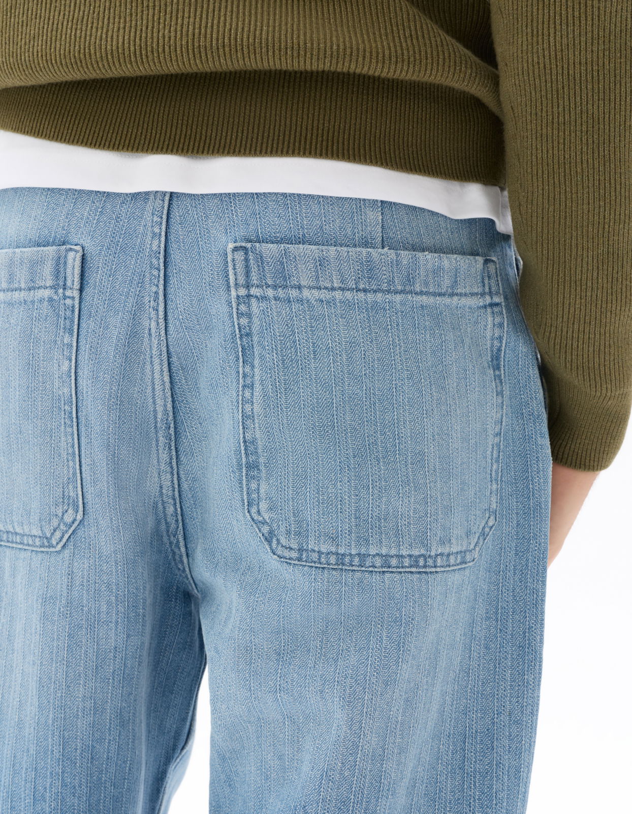 - Blugi largi cu dungi albastre deschise