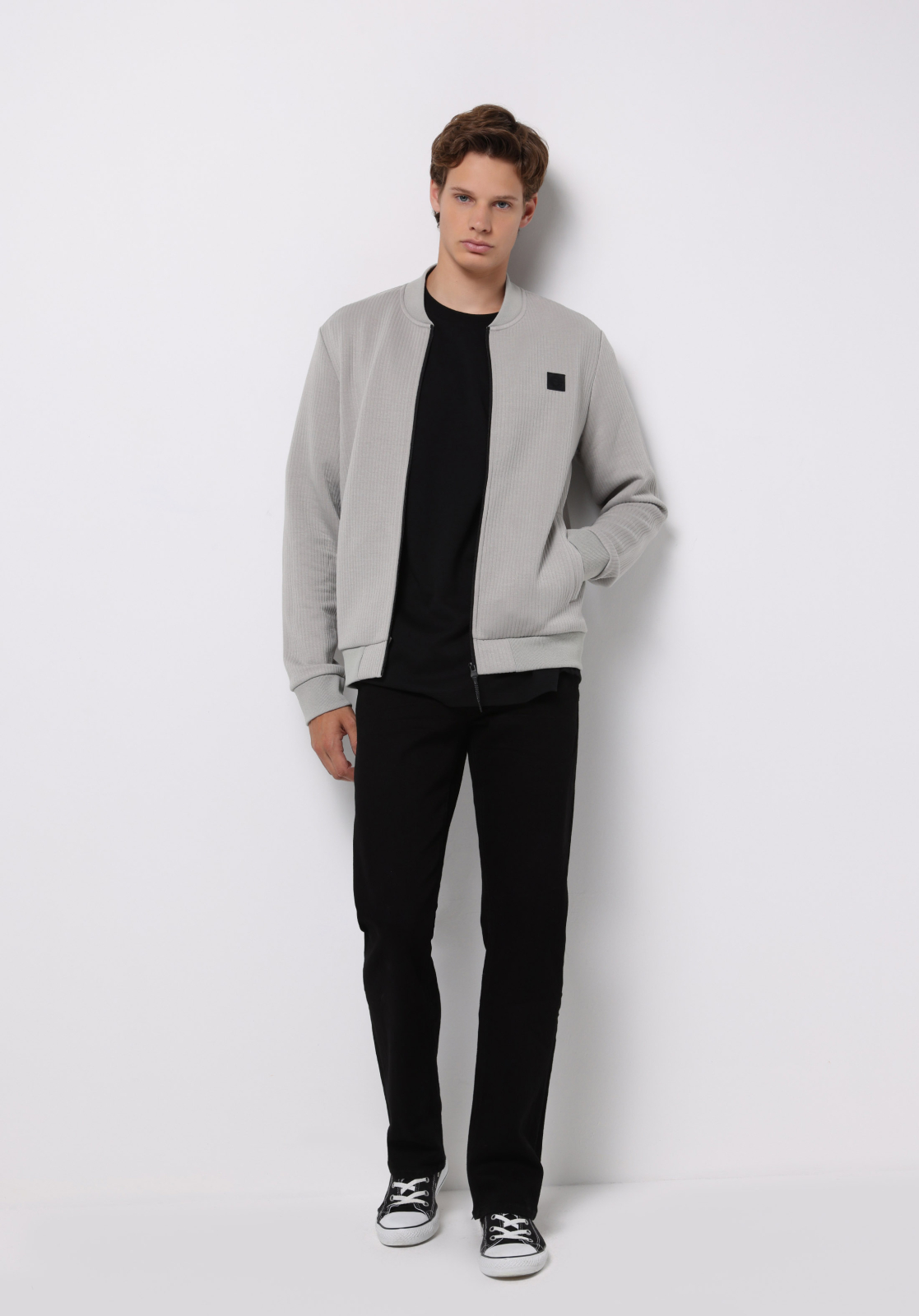 Bluza Gri Deschis Slim Barbati: 98% Poliester, 2% Elastan