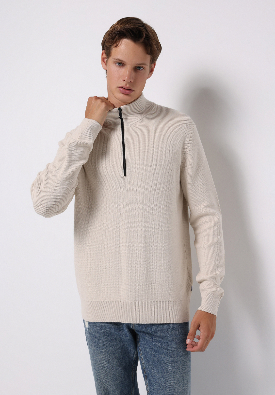 Pulover Crem Barbati: 100% Bumbac