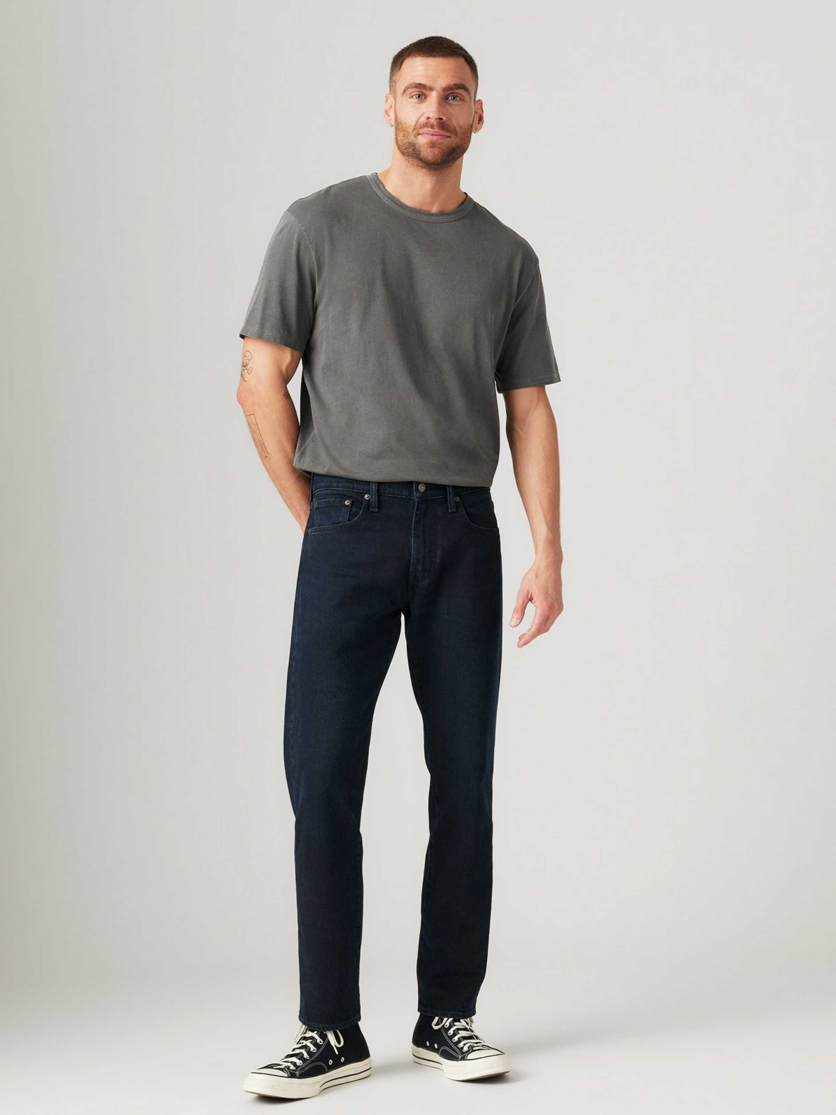 Blugi Navy 502 Tapered Barbati: 67% Bumbac, 32% Lyocell, 1% Elastan