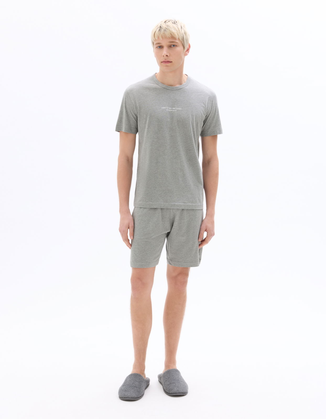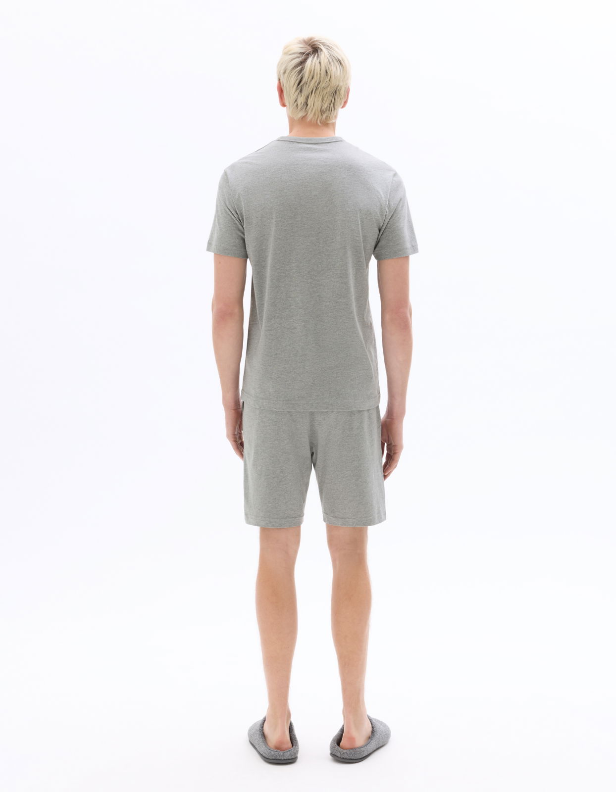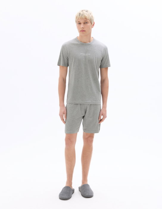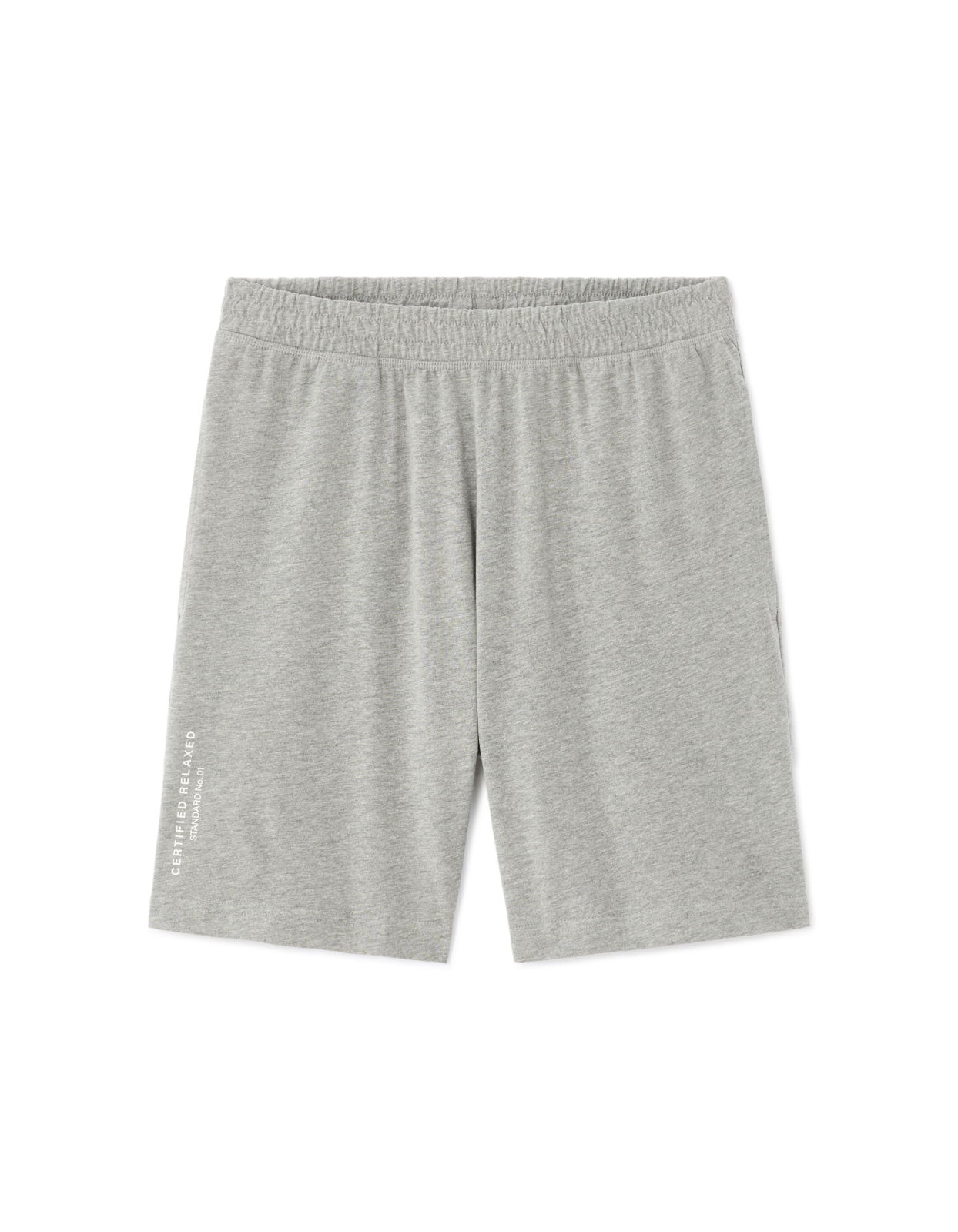 - Partea de jos: Pantaloni scurti gri Heather, talie elastica