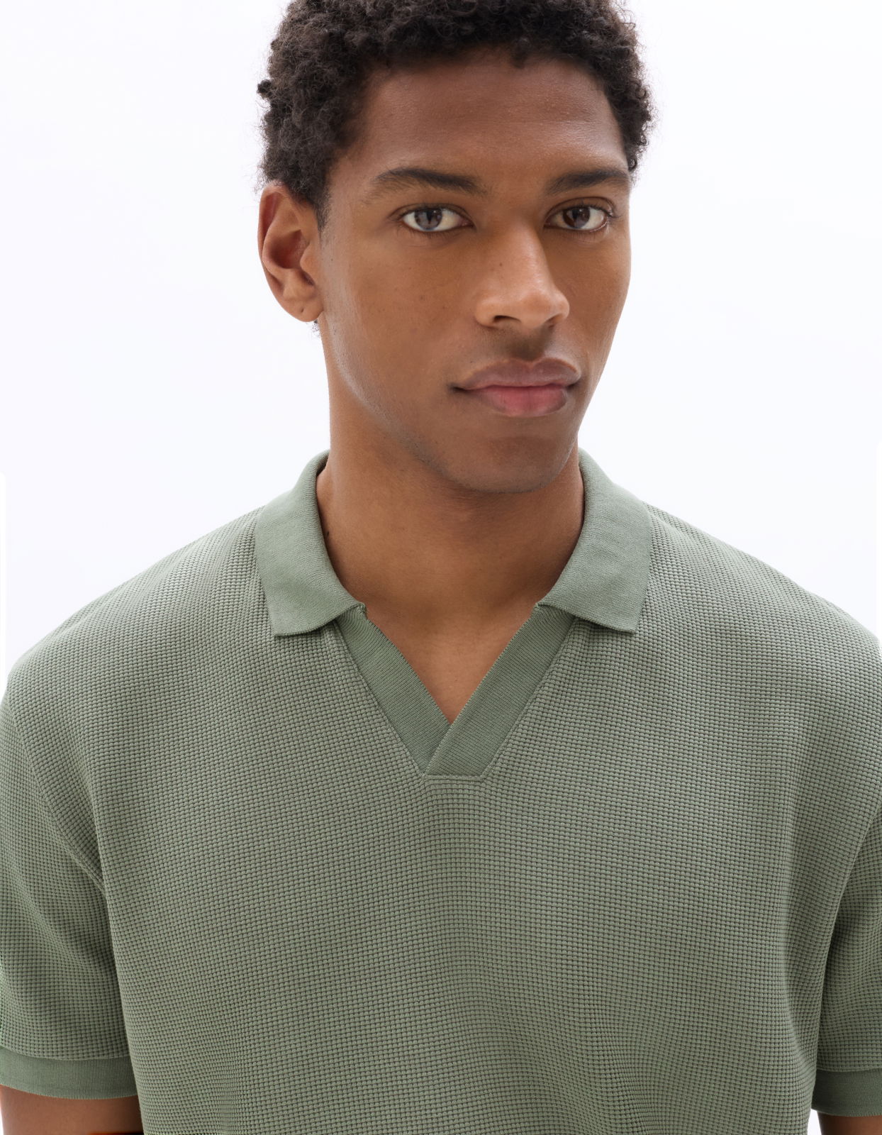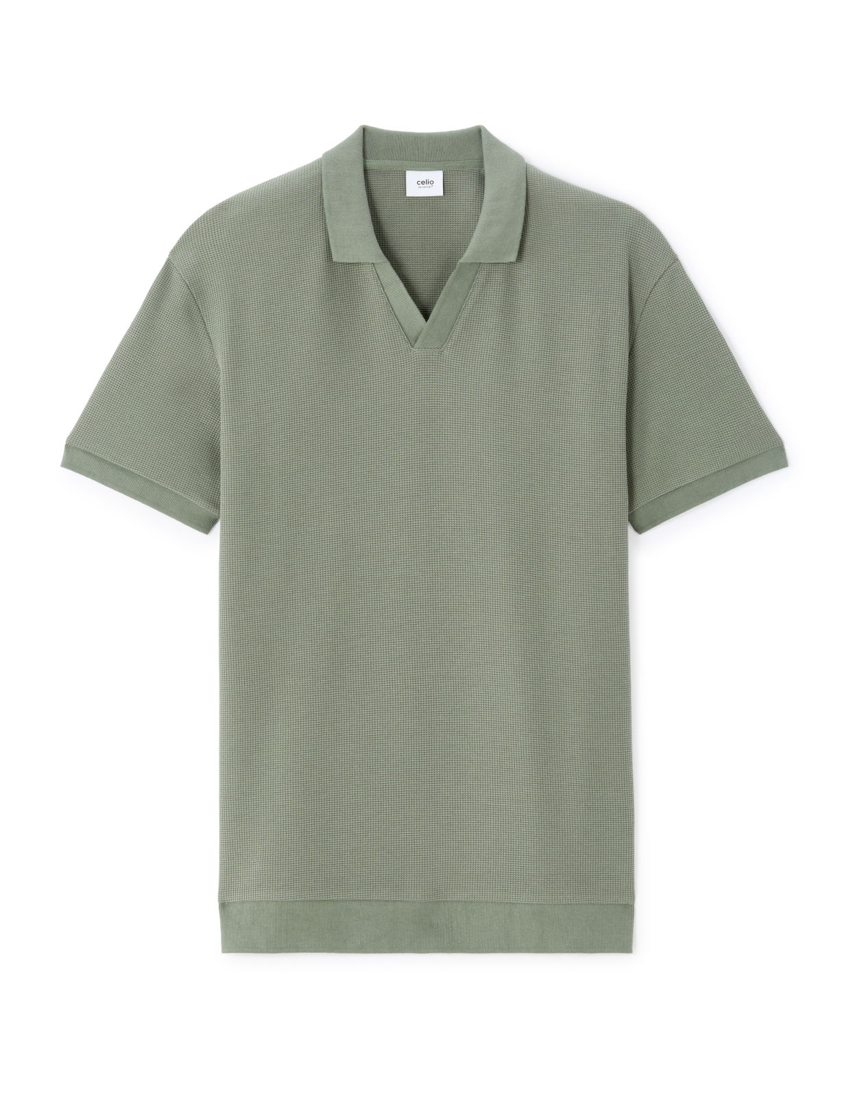 - Tricou polo verde din tricot waffle