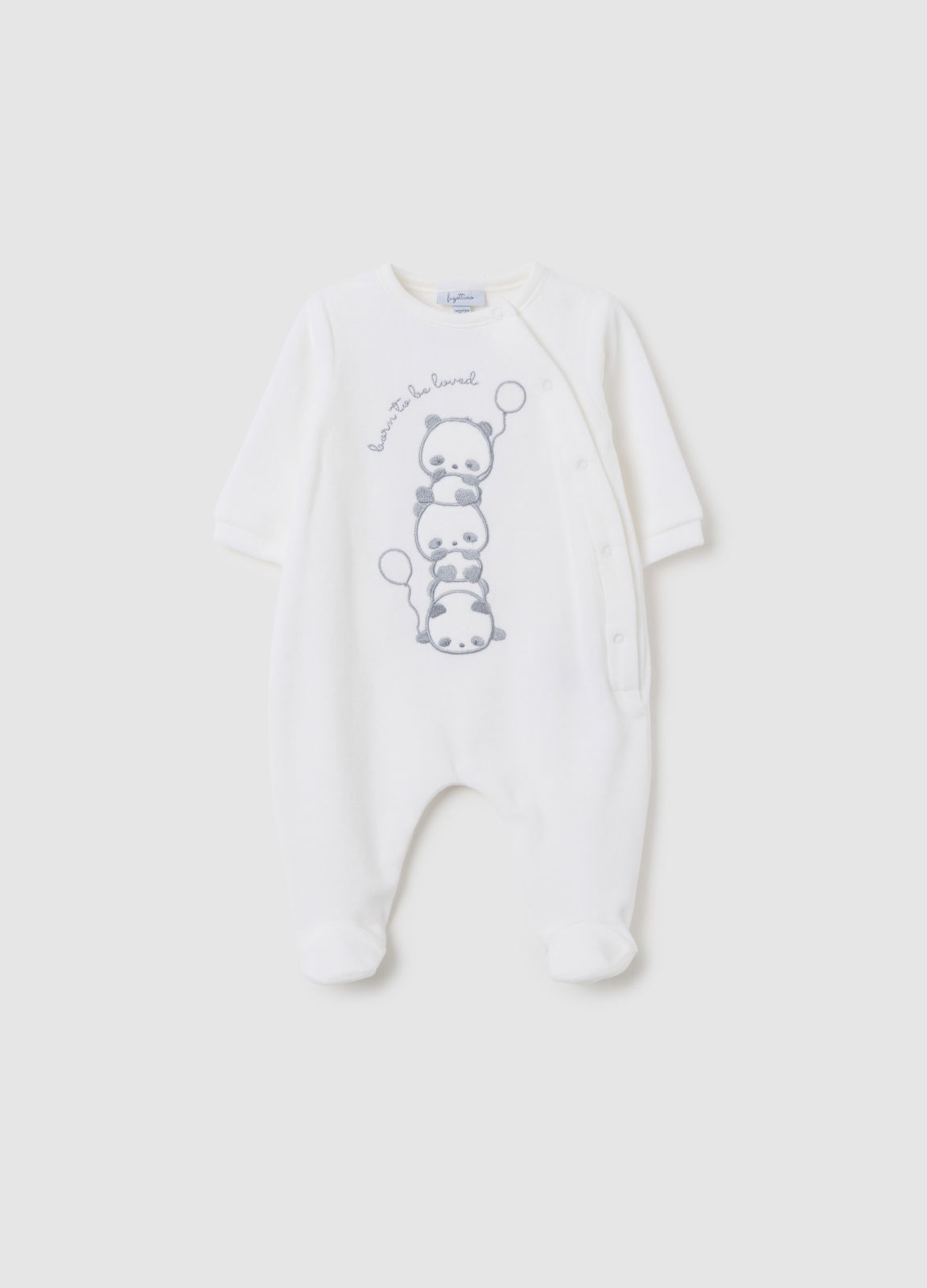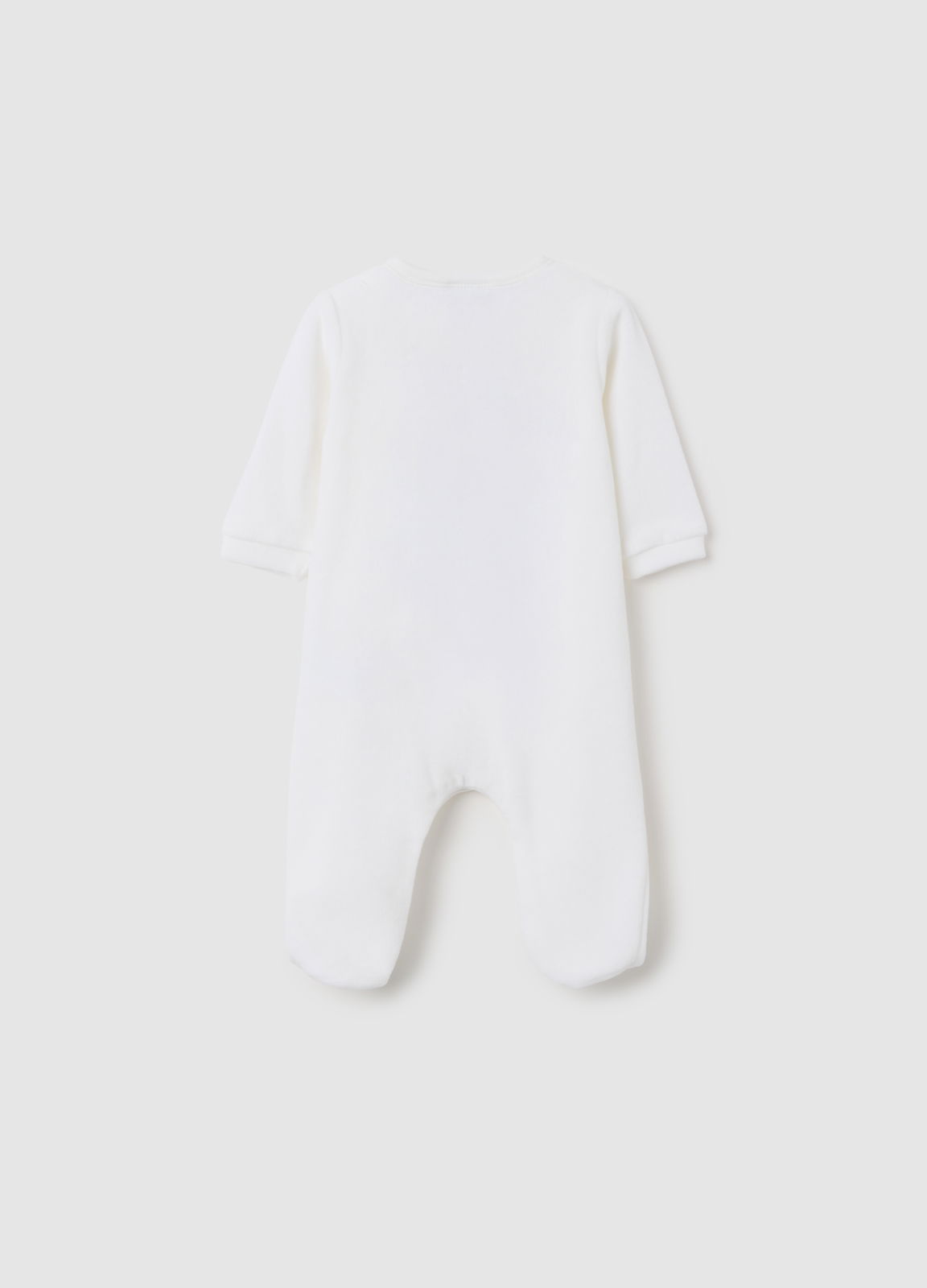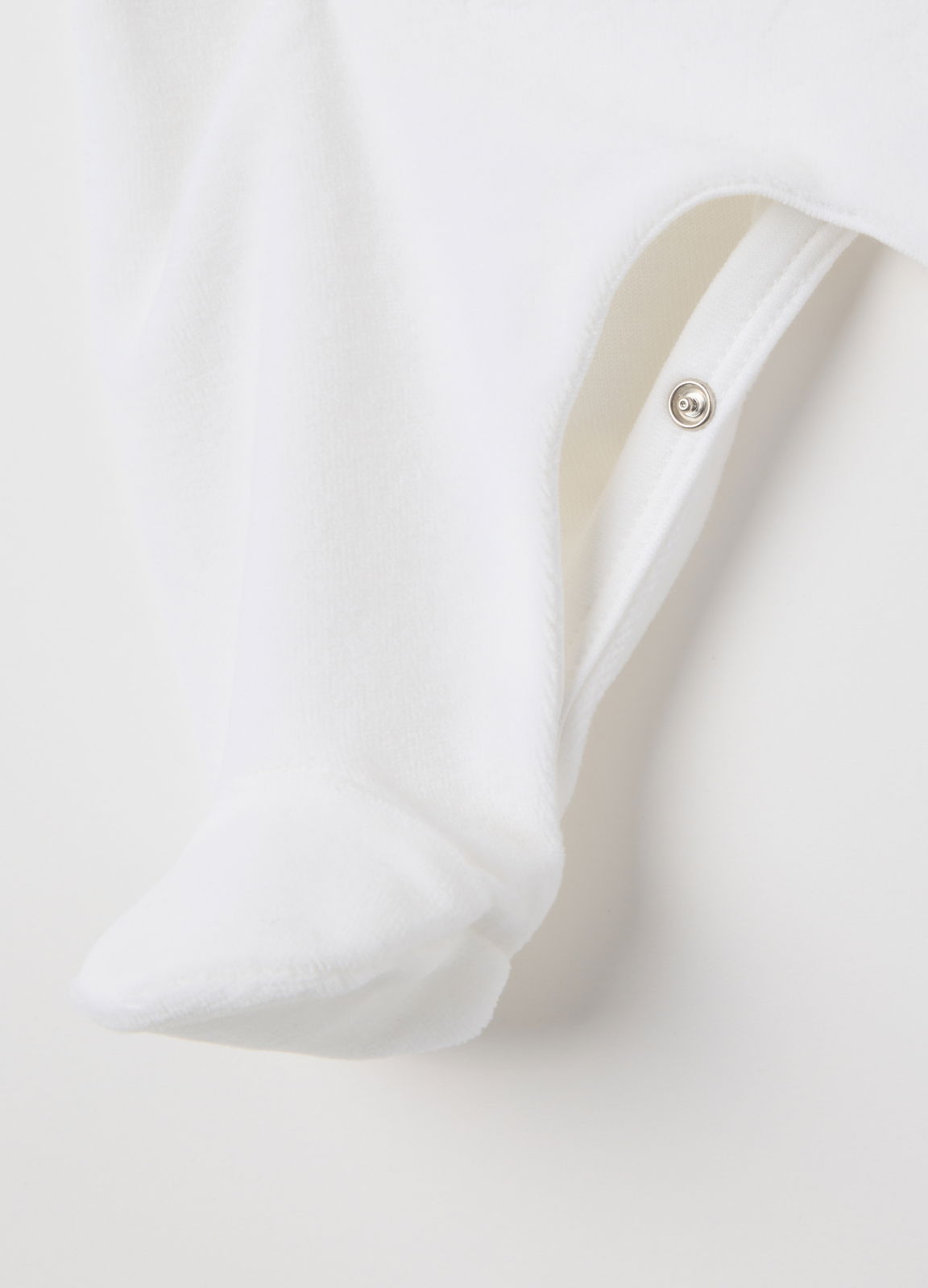 Tip Produs: Salopetă albă pentru bebeluși din amestec de bumbac cu închidere prin capse