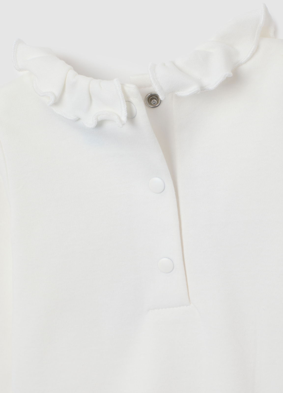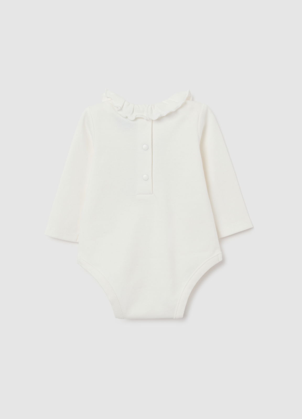 Tip Produs: Body alb pentru nou-născuți, din bumbac 100%, cu guler cu volănaș