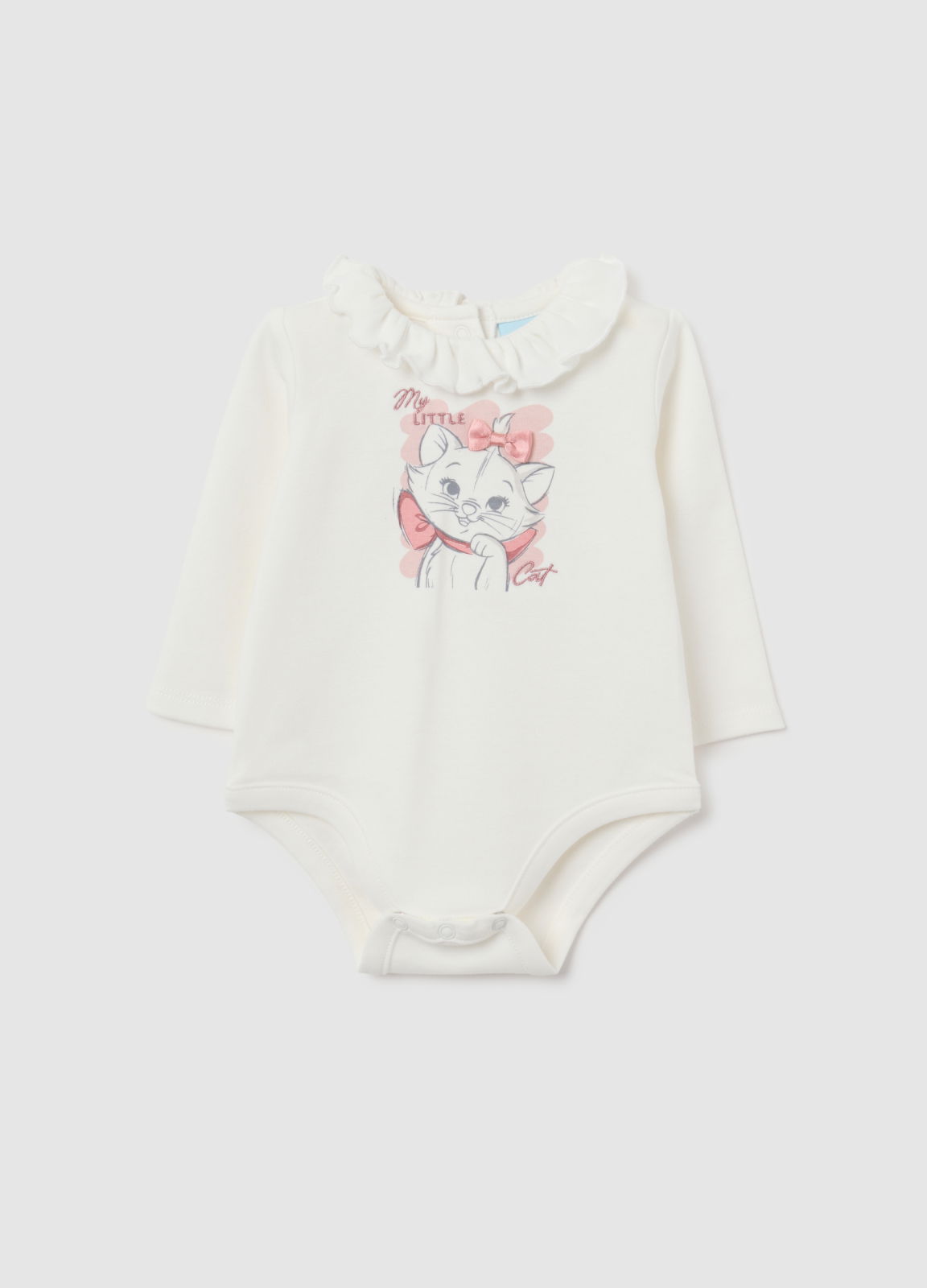 Caracteristici: Body-ul alb pentru bebeluși din linia OVS Kids este realizat din bumbac 100%, asigurând moliciune și confort pentru pielea delicată. Are guler cu volănaș, mâneci lungi și imprimeu cu personajul Disney Minou. Închiderea cu nasturi în spate facilitează schimbarea hainelor și adaugă practicitate.