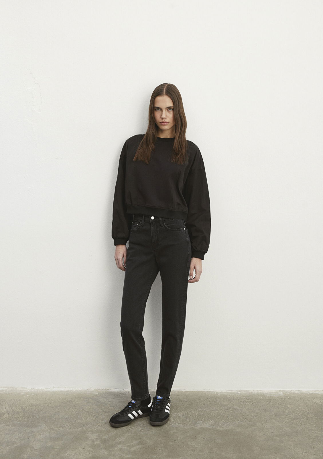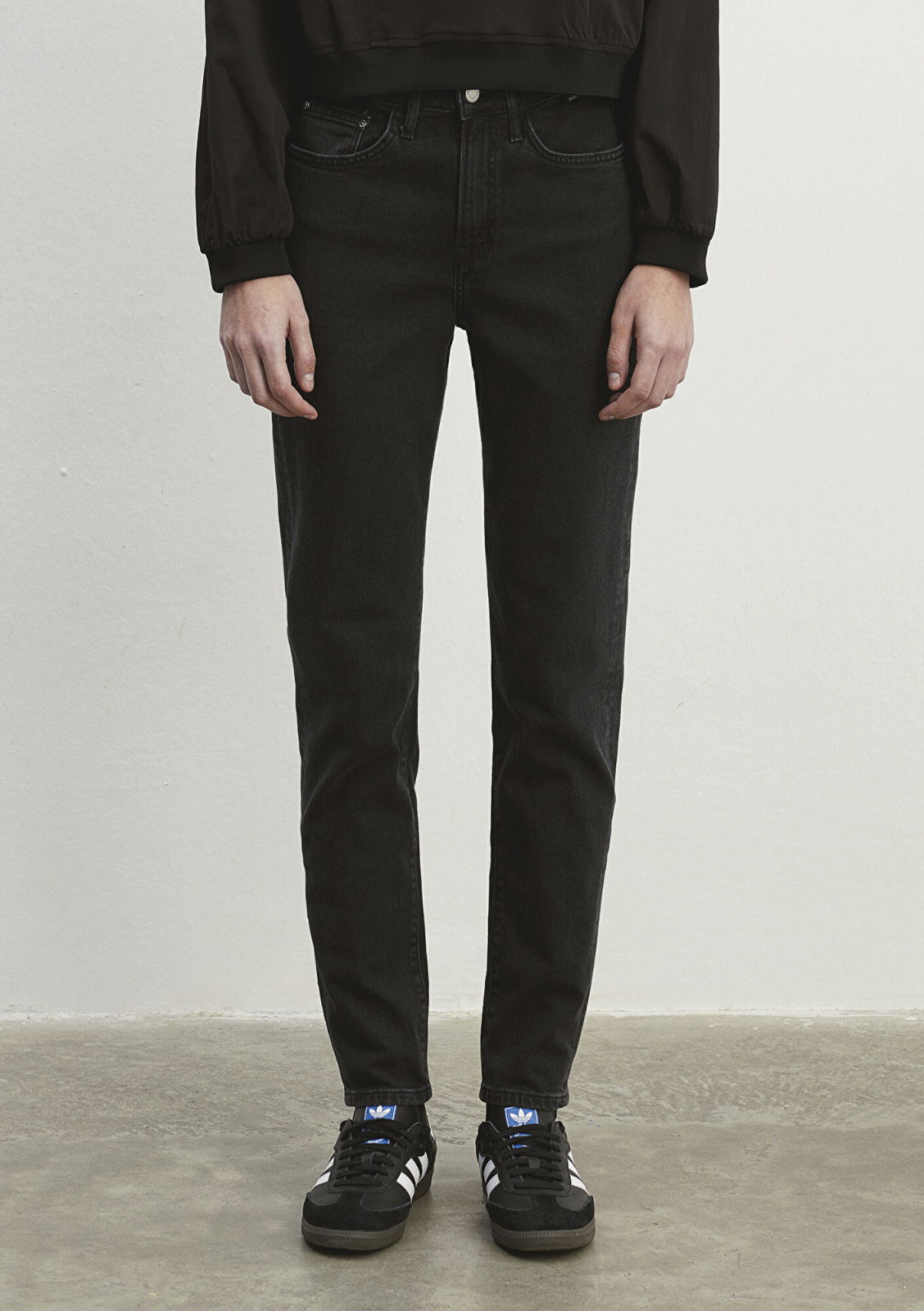 Blugi Gri Inchis Cindy Mom Femei: 57% Bumbac Organic 42% Bumbac 1% Elastan