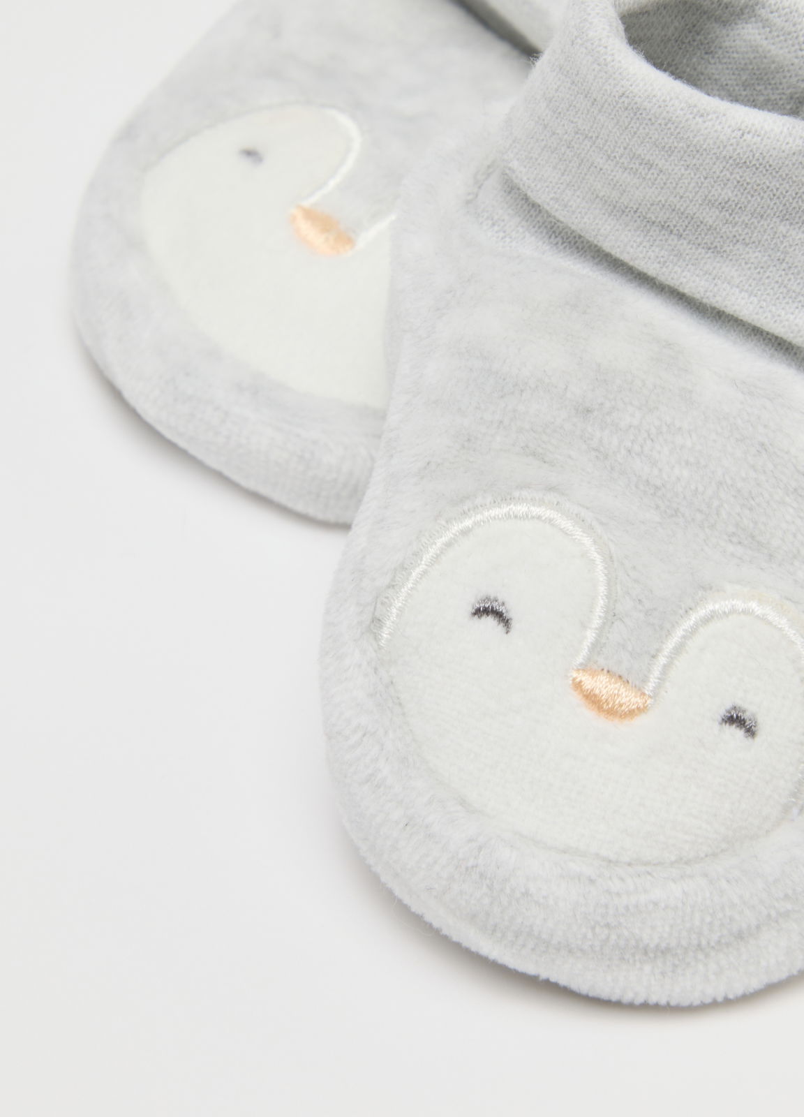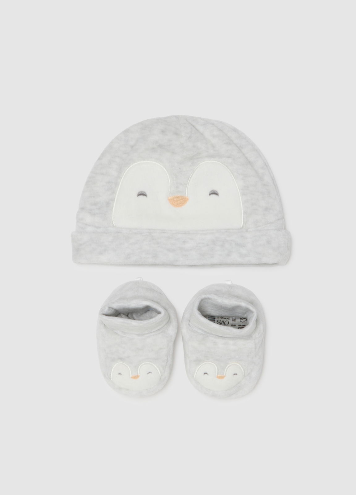 Caracteristici: Acest set adorabil gri din velur pentru nou-născuți include o căciulă și botoșei cu motiv pinguin, concepuți pentru a asigura căldură și confort încă din primele zile. Materialul moale și plăcut este ideal pentru sezonul toamnă-iarnă. Designul simpatic adaugă un plus de dulceață ținutelor zilnice.