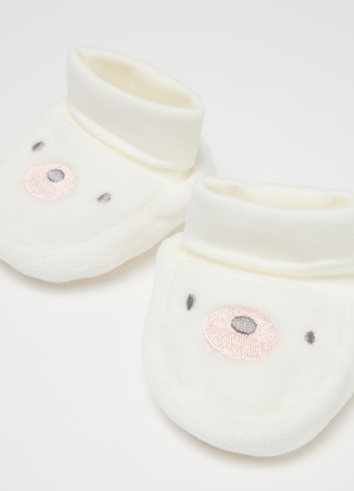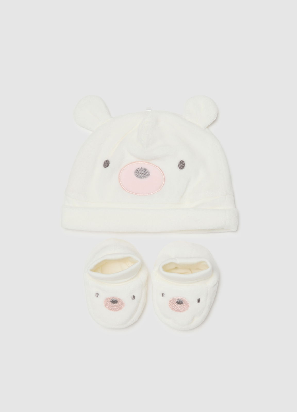 Caracteristici: Acest set alb pentru nou-născuți din amestec de bumbac din linia Fagottino include o căciulă și botoșei din velur moale, ideali pentru sezoanele reci. Designul cu detalii în formă de ursuleț adaugă farmec, făcându-l ideal pentru momentele de joacă sau odihnă.