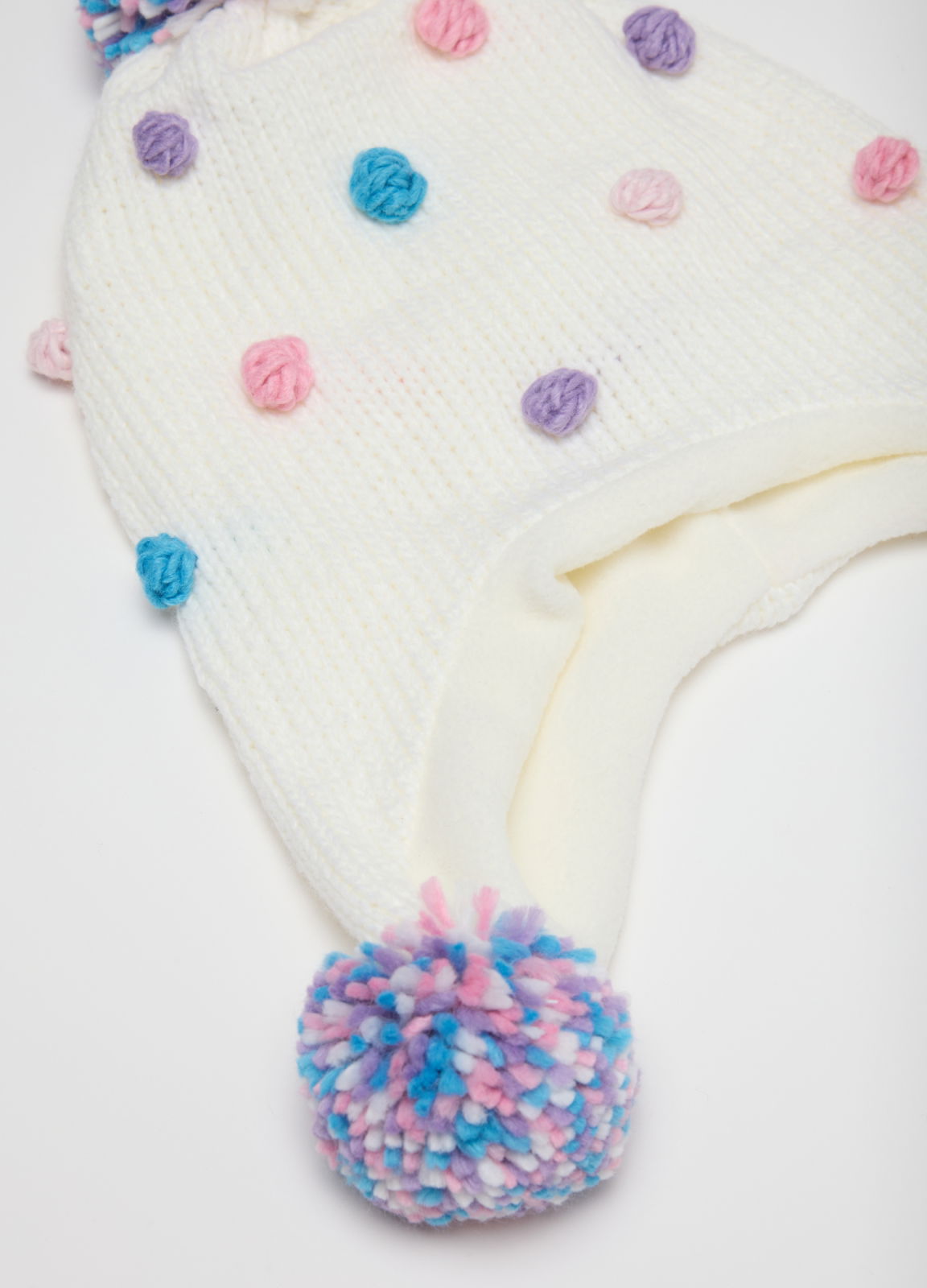 Caracteristici: Căciulă albă OVS KIDS – accesoriu vesel și colorat pentru fete 3-15 ani, cu pompoane, versatilă și caldă.
