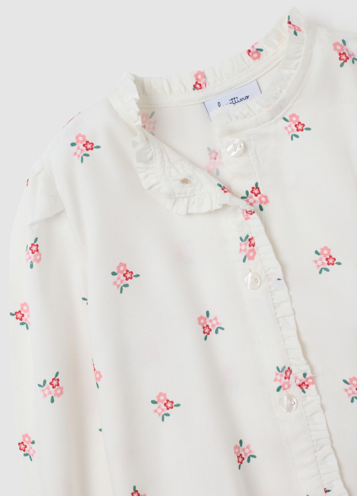 Caracteristici: Bluză albă cu volane din linia Fagottino, destinată fetelor între 9 și 36 de luni. Confecționată din vâscoză pură, oferă un contact delicat cu pielea. Designul floral adaugă un plus feminin, făcând-o ideală pentru sezoanele mai răcoroase. Închiderea cu nasturi asigură practicitate, făcând acest articol perfect pentru confortul de zi cu zi.