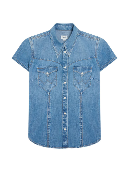 Wrangler Camasa Cu Maneca Scurta Albastra Slim Femei