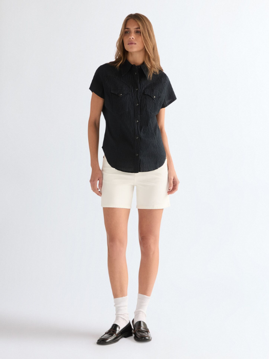 Wrangler Camasa Cu Maneca Scurta Neagra Slim Femei: 99% Bumbac 1% Elastan