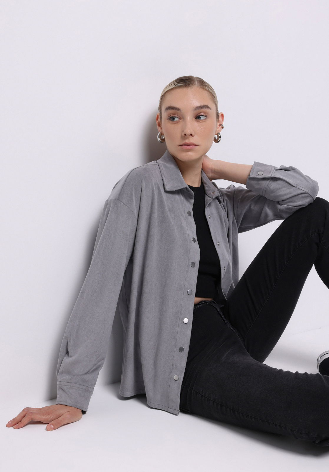 Camasa Gri Deschis Femei: 93% Poliester, 7% Elastan
