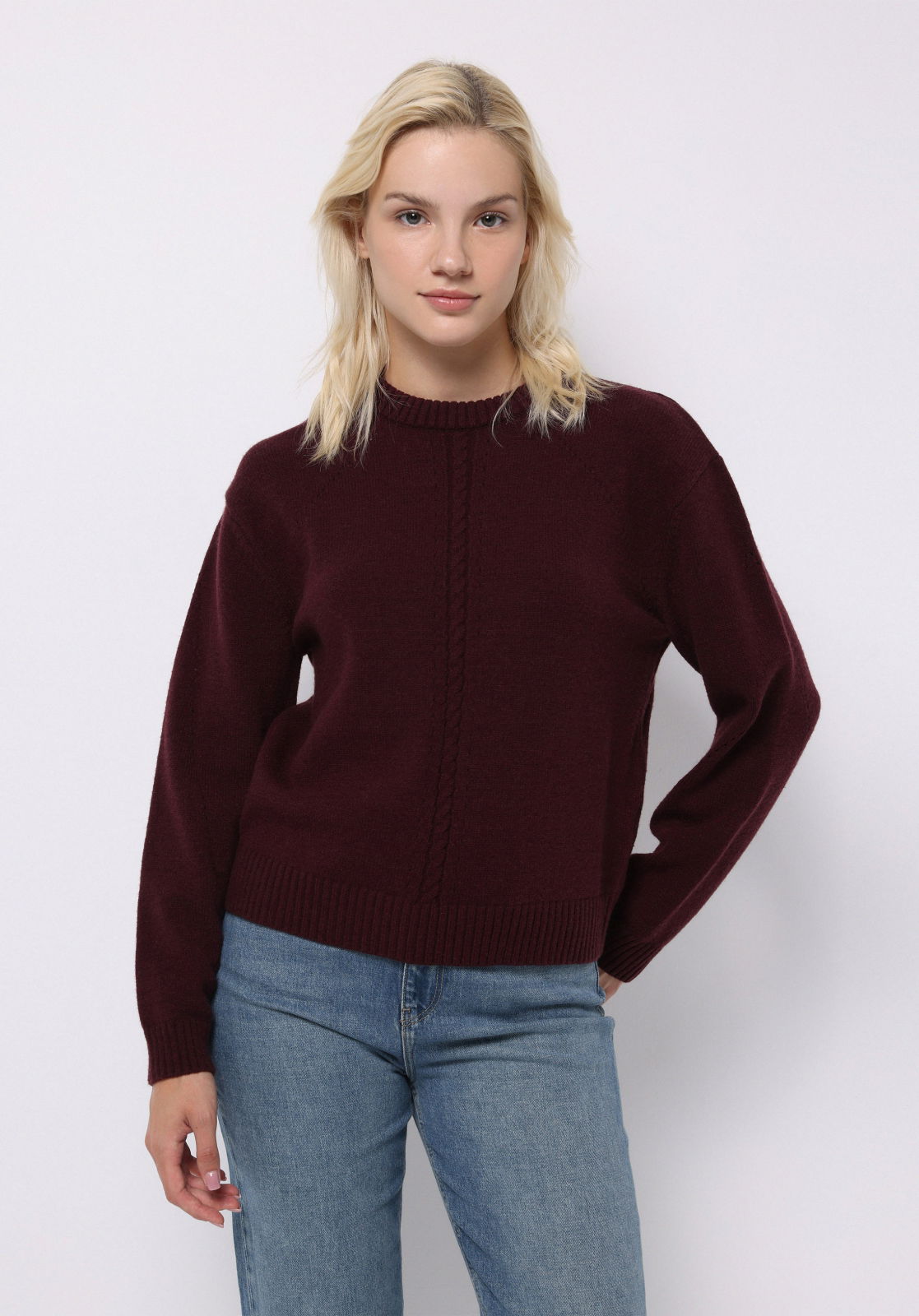Pulover Rosu Visiniu Regular Femei: 48% Acril, 30% Poliester, 22% Poliamidă
