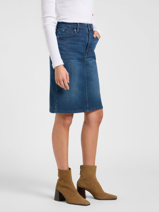 Fusta Albastra Regular Femei: 67% Bumbac, 32% Lyocell, 1% Elastan