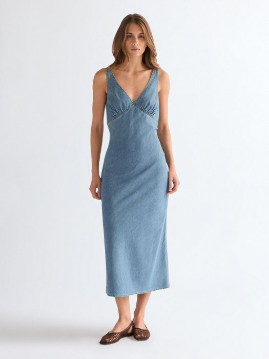 Wrangler Rochie Albastra Slim Femei: 57% Bumbac 43% Liocel