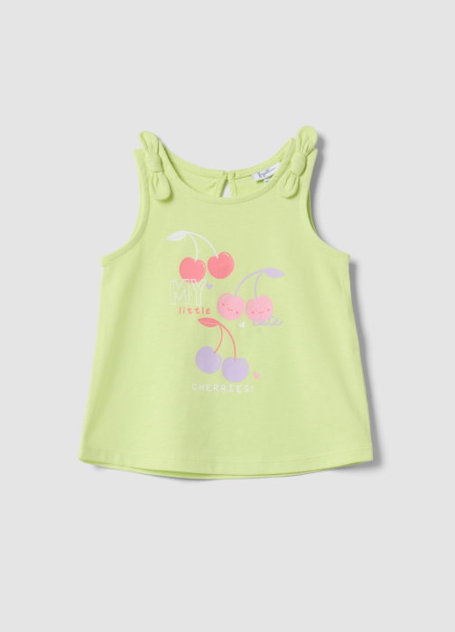Tip Produs: Maiou verde fete, croială regular din bumbac cu imprimeu cireșe