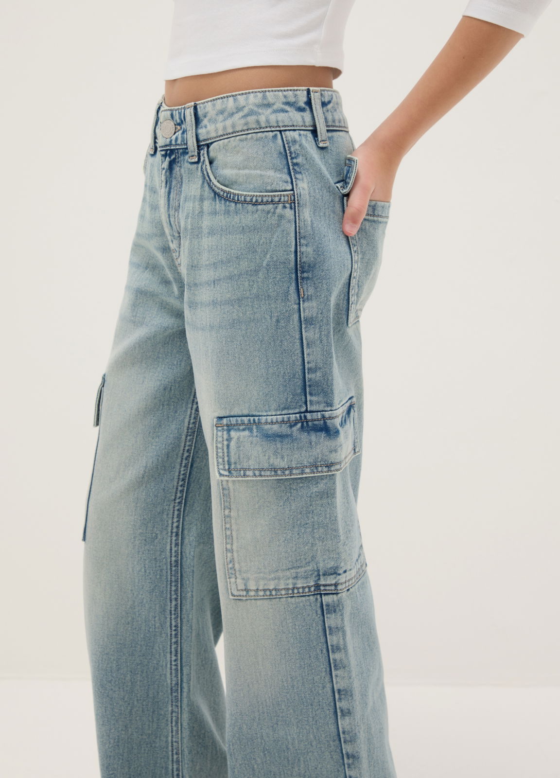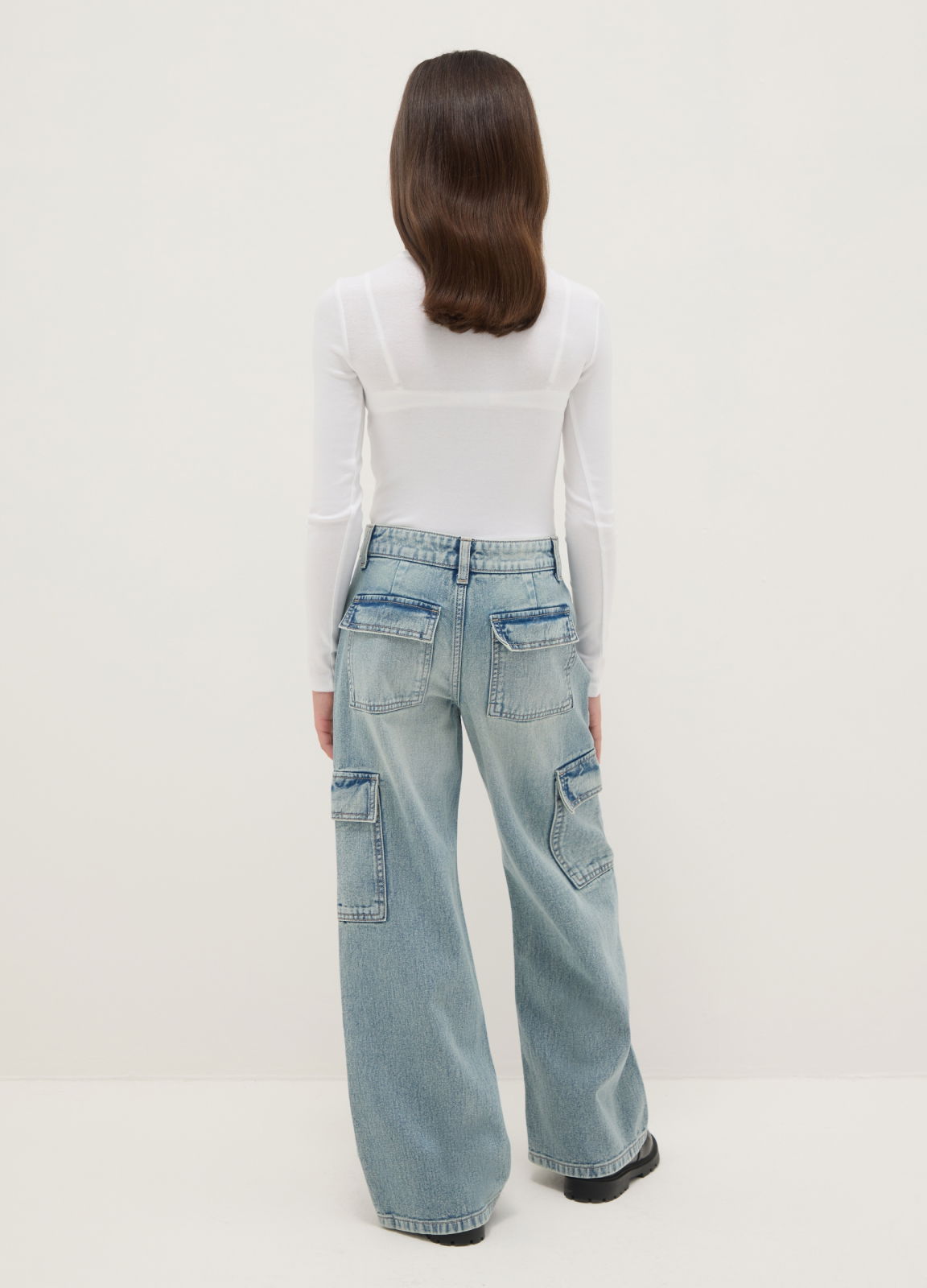 Caracteristici: Blugii albaștri din linia Republic of Denim sunt realizați din bumbac pur, ideali pentru fete între 10 și 15 ani. Acești pantaloni au croială standard cu picior larg, perfectă pentru un look casual. Talie ajustabilă pentru adaptare pe măsură ce cresc. Buzunarele cargo practice adaugă funcționalitate, fiind ideali pentru orice ocazie.