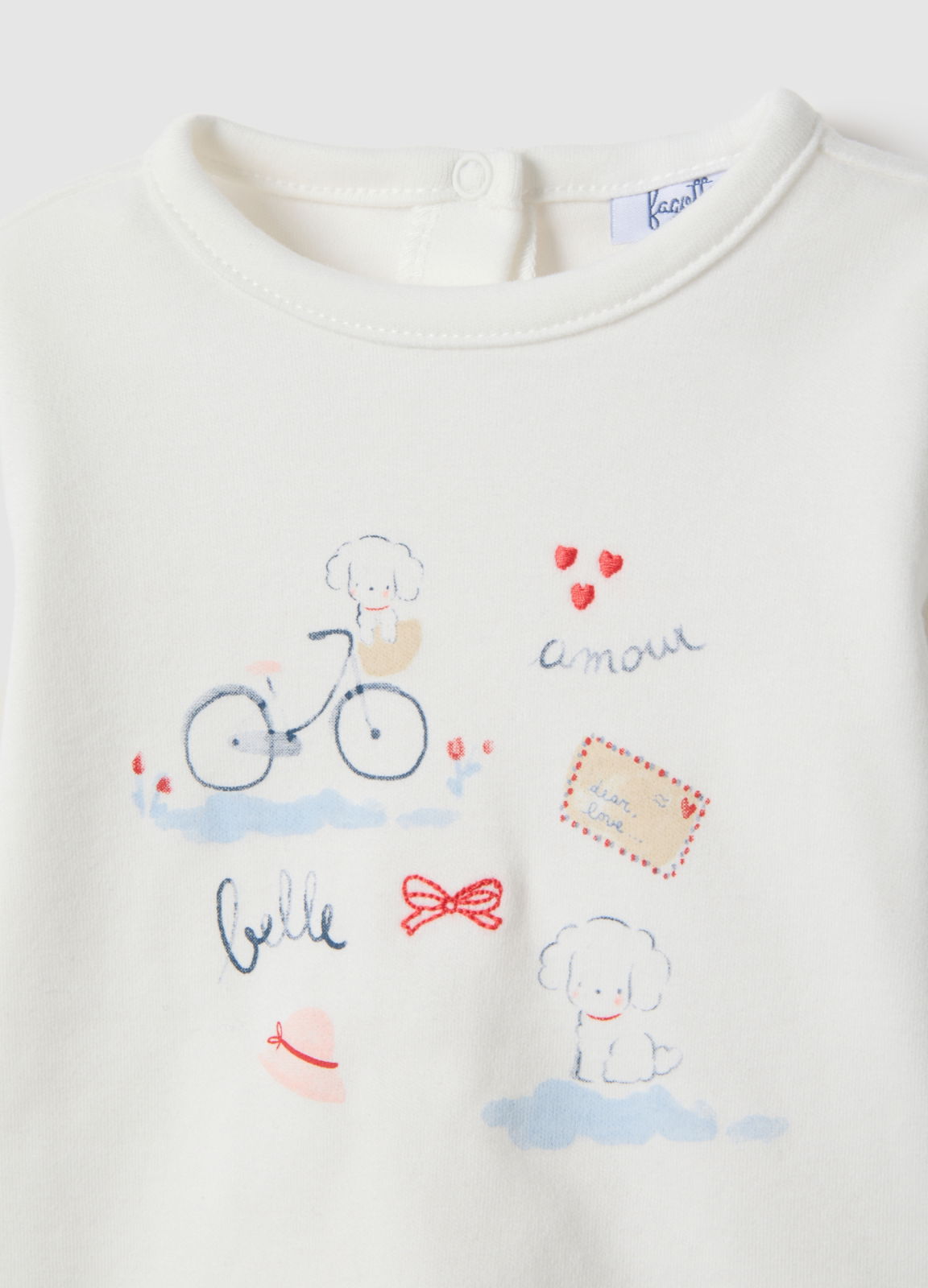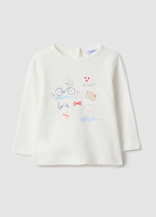 Tip Produs: Bluză albă pentru bebeluși din bumbac pur, croială regular, cu desene