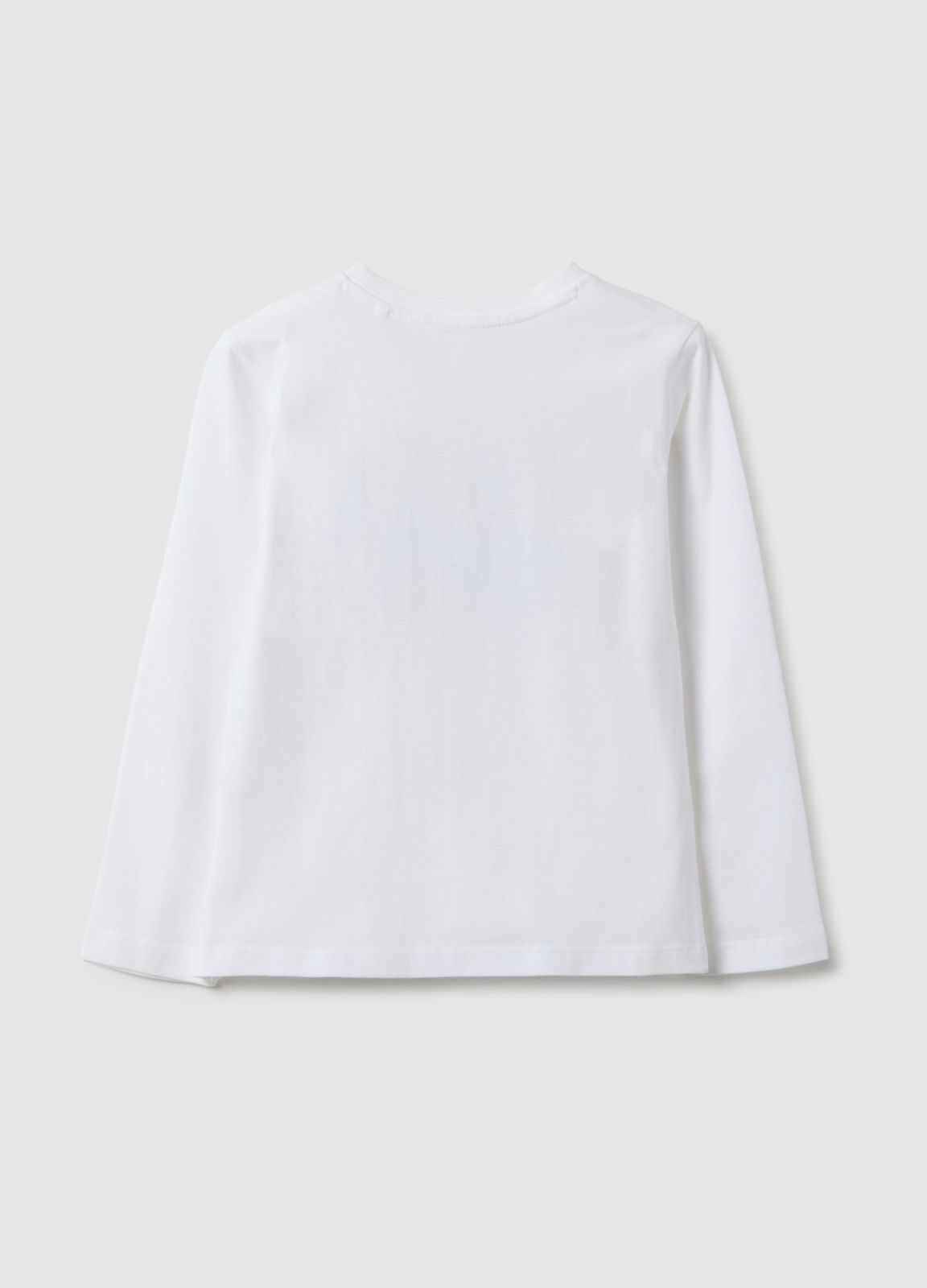Caracteristici: Tricou alb cu mânecă lungă din bumbac 100%, linia OVS KIDS, fete 3–10 ani, primăvară. Design cu guler rotund și imprimeu frontal, croială regular, confort pentru joacă.