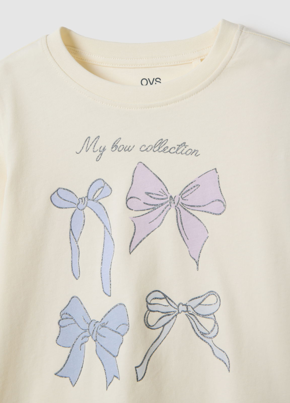 Caracteristici: Tricoul bej cu mânecă lungă OVS KIDS este decorat cu fundițe delicate și este conceput pentru fete cu vârste între 3 și 10 ani. Realizat din bumbac 100%, oferă finețe, confort și respirabilitate. Designul cu guler rotund îl face ideal pentru un look casual în sezonul de primăvară.