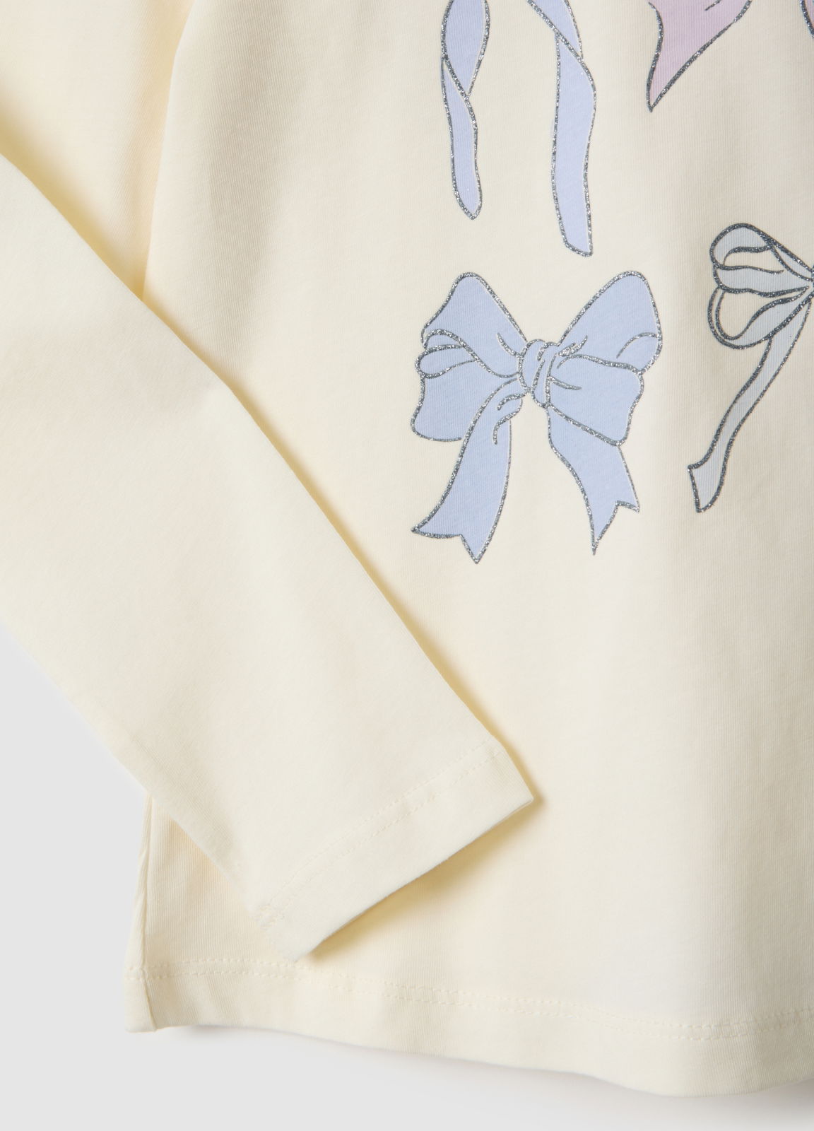 Tip Produs: Tricou bej din bumbac 100% cu fundițe pentru fete