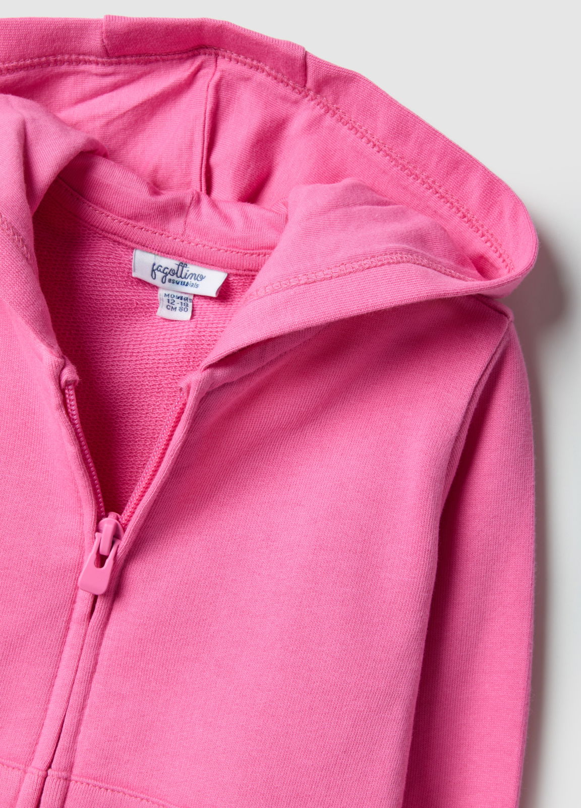 Caracteristici: Hanoracul roz cu glugă din linia Fagottino este realizat din bumbac pur și este conceput pentru fetele cu vârste între 9 și 36 de luni, perfect pentru sezoanele de tranziție. Creat pentru moliciune și confort, are croială regular și închidere completă cu fermoar. Mânecile lungi și materialul French Terry asigură căldură în zilele mai răcoroase.