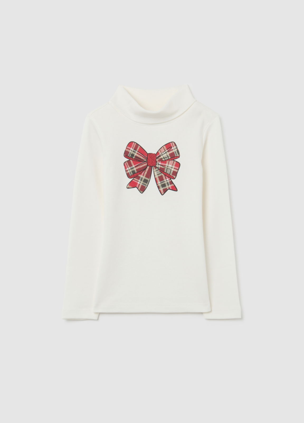 Caracteristici: Pulover alb cu imprimeu de Crăciun pentru fete, OVS KIDS (3-10 ani) – bumbac 100%, mâneci lungi, guler rotund și croială normală, confortabil și ușor de purtat.
