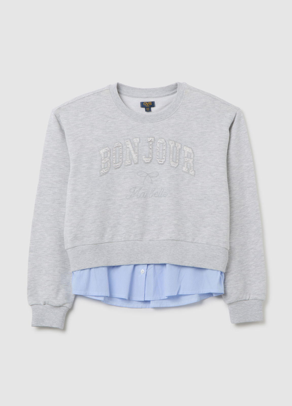 Caracteristici: Hanoracul gri din amestec de bumbac pentru fete cu vârsta între 10 și 15 ani, din gama OVS KIDS, are o croială lejeră și mâneci lungi, asigurând confort în zilele mai răcoroase. Realizat din bumbac și viscoză, garantează respirabilitate pentru piele. Imprimeul „Bonjour” evidențiază partea din față, iar tivul suprapus oferă un stil unic.