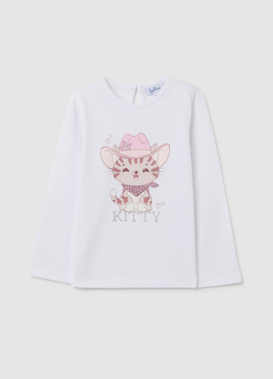 Tip Produs: Tricou alb cu mânecă lungă pentru fete, cu imprimeu